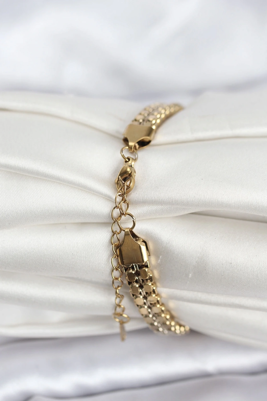 MuI MuI Pirinç Gold Renk Yassı Zincir Model Kadın Bileklik