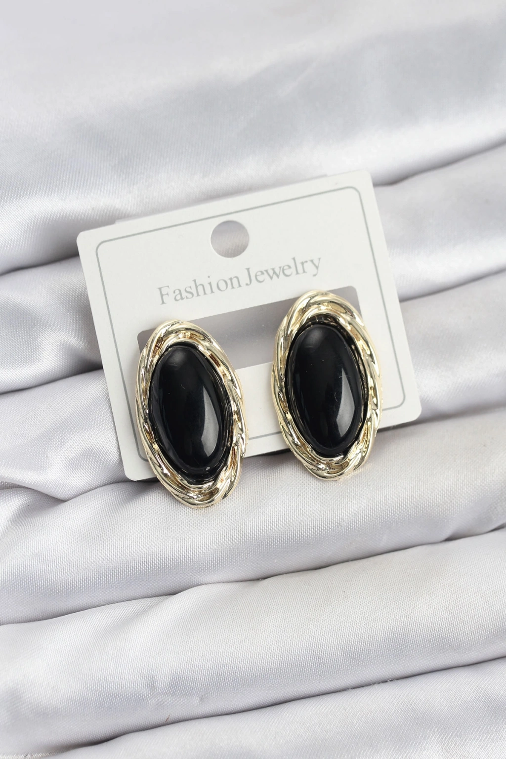 MuI MuI Siyah Badem Model Vintage Kadın Küpe