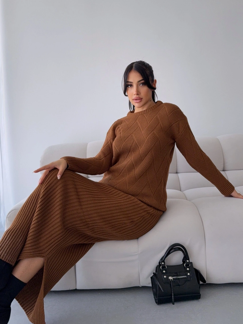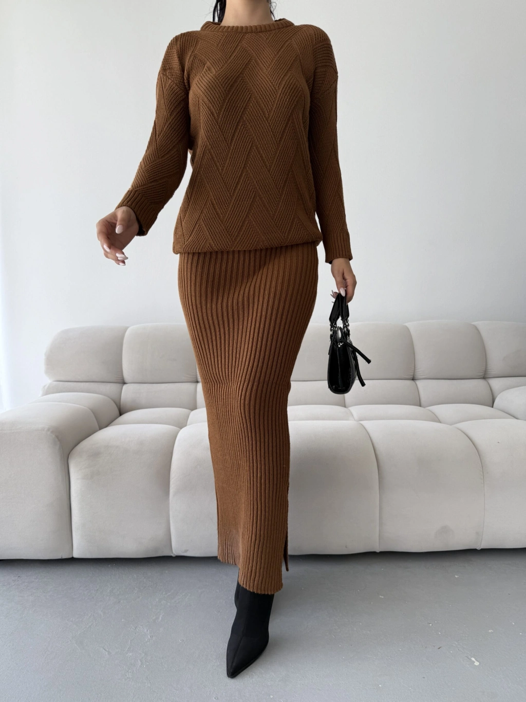 Etek Kazak Triko Takım 1558 - Kahverengi