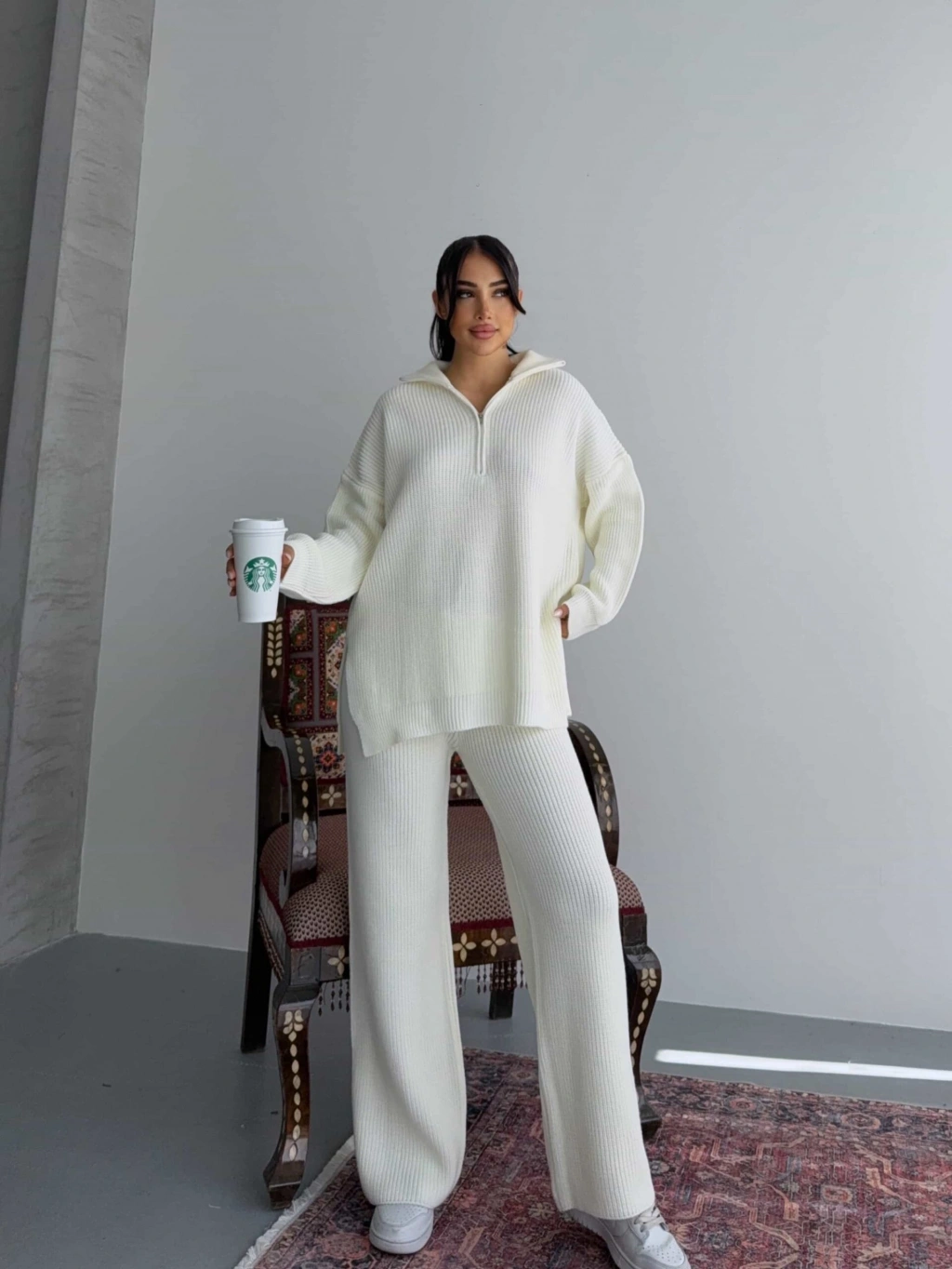 Ürün İçeriği: %30 Yün %70 Akrilik Model Bedeni: (S/M Beden) Eu:36-38 Us:4-6 Ürün Ölçüleri:Üst Kazak:Boy: 75 cm - En: 63 cm - Omuz: 55 cm - Kol Boyu: 43 cmAlt PantolonBel: 26 cm - Basen: 50 cm - Boy: 102 cm