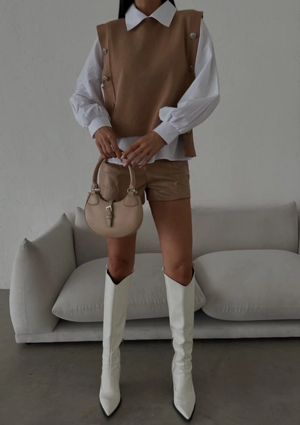 Ürün İçeriği: Gömlek (%95 Cotton % 5 Polyester) Süveter ( %30 Wool %70 Acrylic) Model Bedeni: (S Beden) Eu:36 Us:4 Ürün Ölçüleri: Boy: 62 cm - En: 48 cm - Kol Boyu: 55 cm