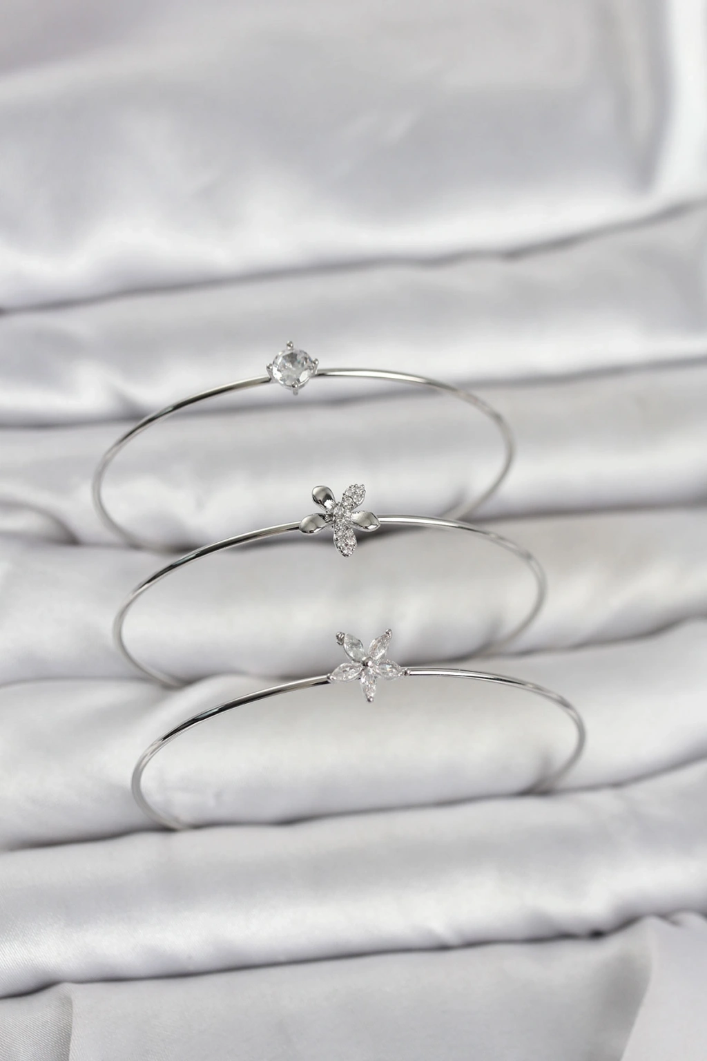MuI MuI Gümüş Renk Zirkon Taşlı Pirinç 3'lü Kadın Bileklik Kombini