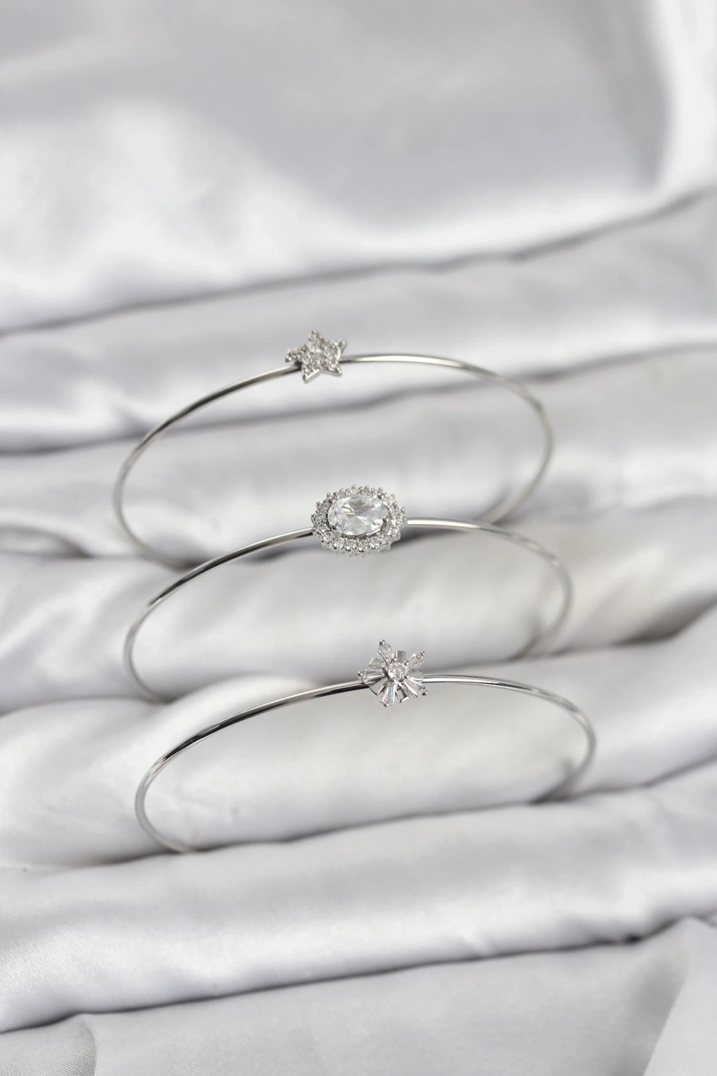 MuI MuI Zirkon Taşlı Gümüş Renk Tek Taş Model 3'lü Kadın Bileklik Kombini