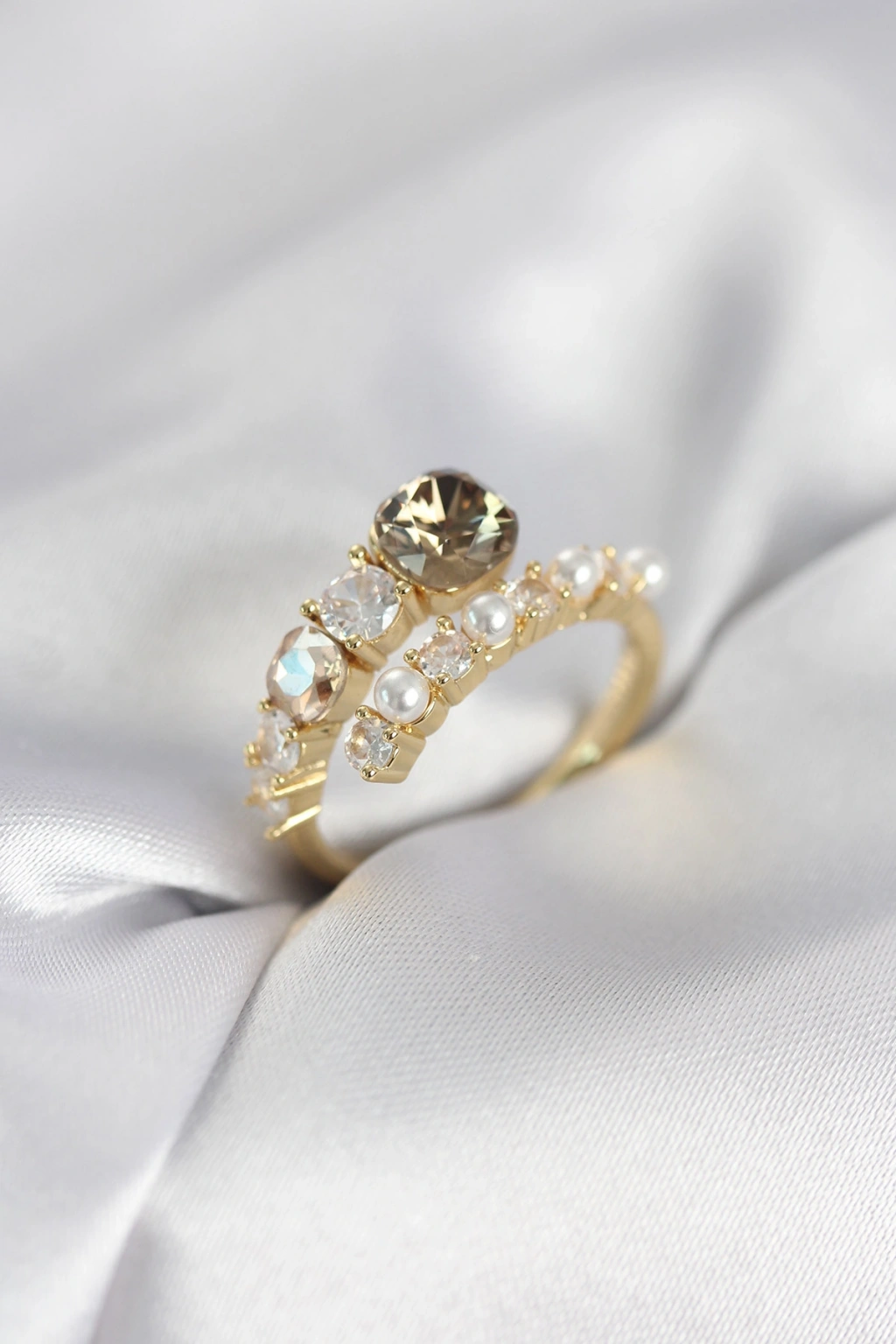 MuI MuI Goldfarbener Messingring mit Zirkonia und Perle für Damen