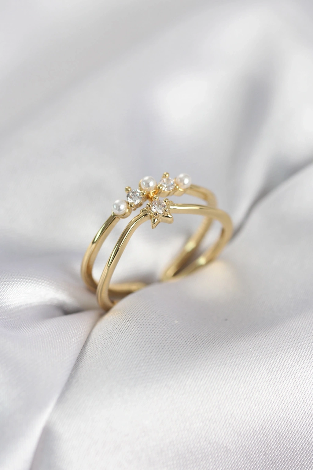 MuI MuI Goldfarbener Perlen-Stern-Ring mit Zirkonia-Stein für Damen