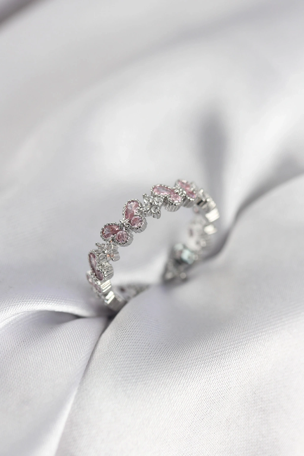 MuI MuI Damenring mit rosa Zirkonia-Stein und Schmetterlingsmotiv