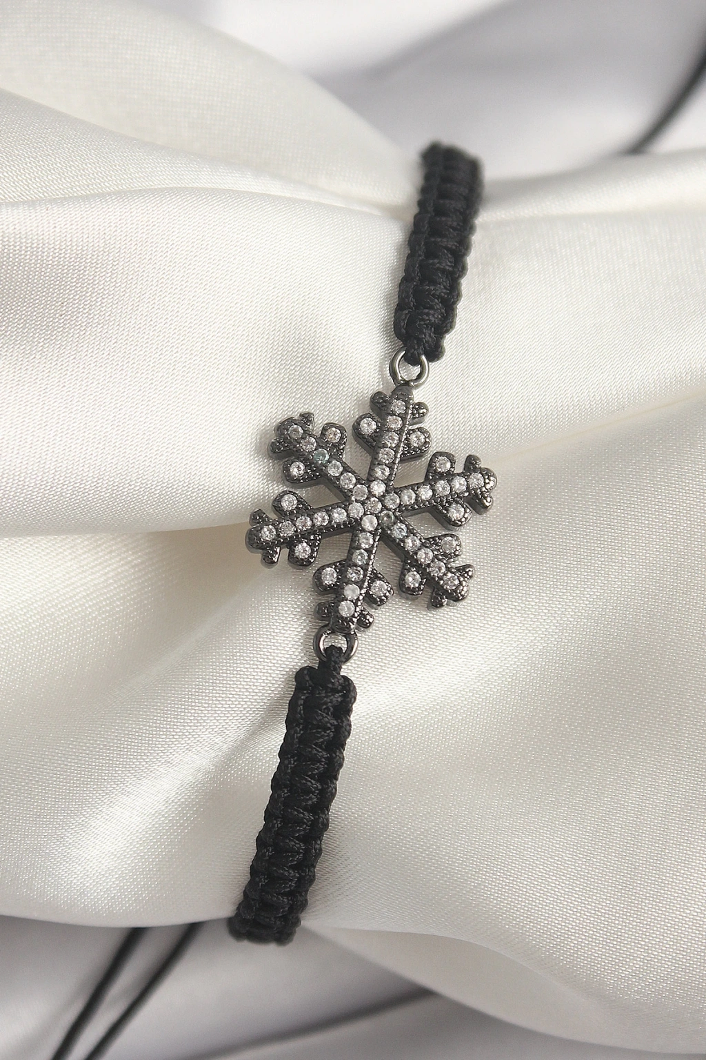 MuI MuI Pirinç Füme Renk Zirkon Taşlı Kar Tanesi Figür Makrome Asansörlü Model Kadın Bileklik