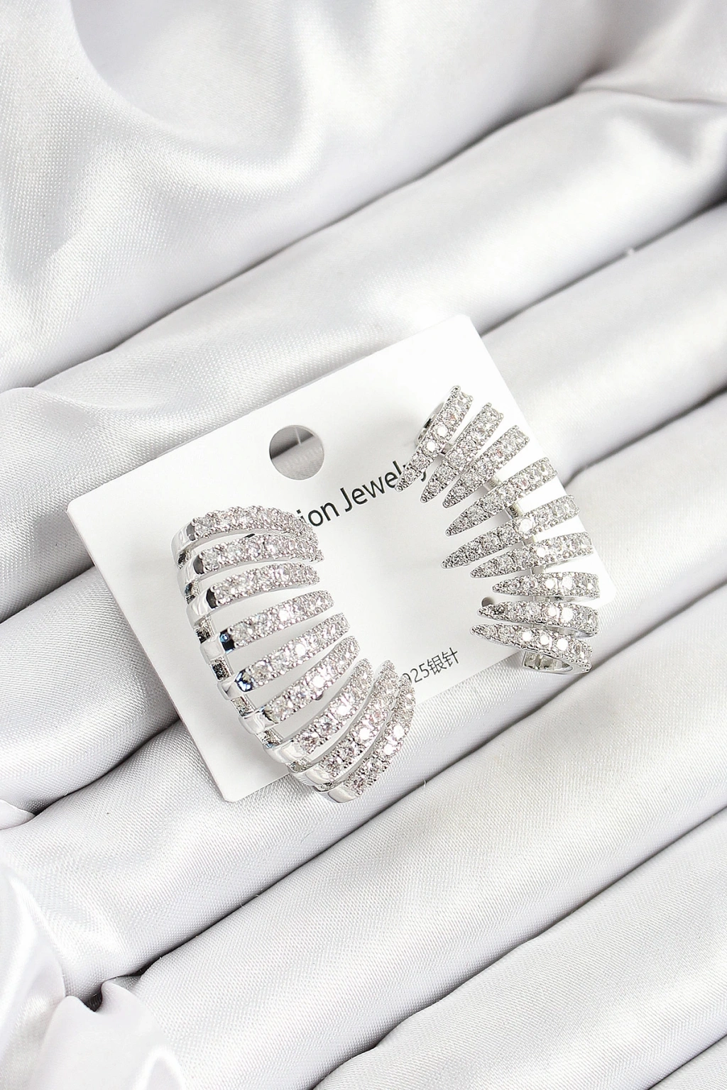 MuI MuI Pirinç Zirkon Taşlı Çoklu Görünümlü Model Gümüş Renk Kadın Küpe