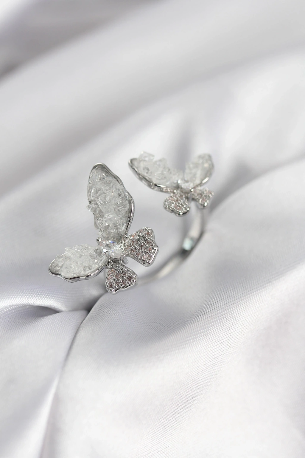 MuI MuI Silberfarbener Damenring „Weißes Schmetterlingsmodell“ mit Zirkonia-Steinen