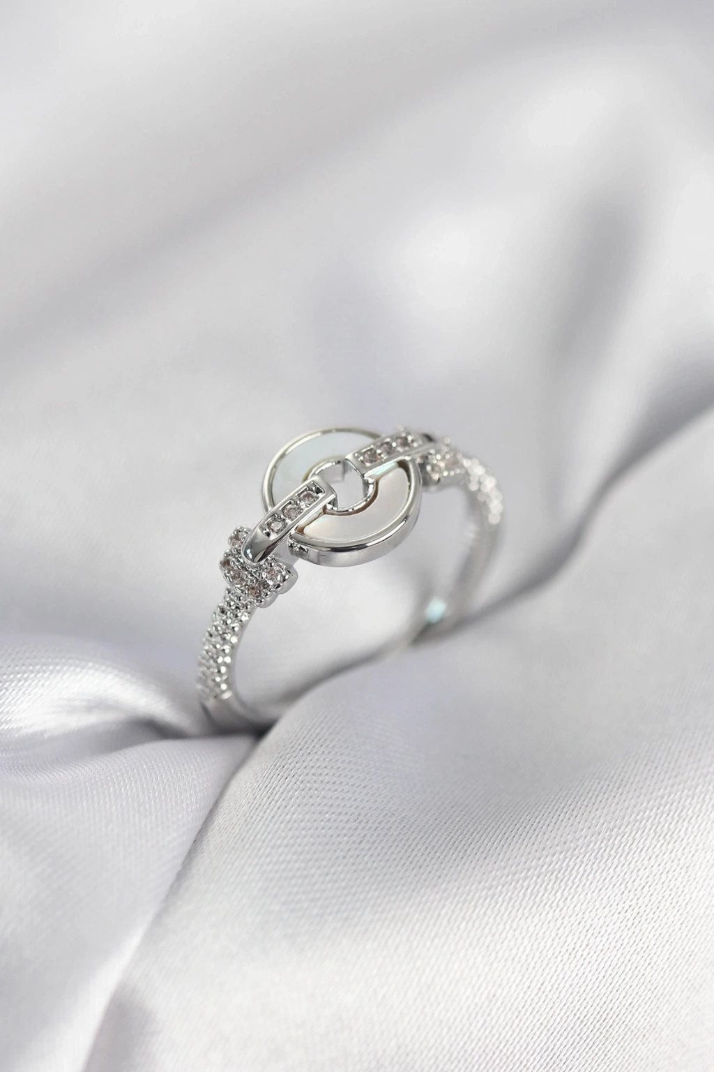 MuI MuI Silberfarbener, runder Damenring mit Perlmutt- und Zirkonsteinen