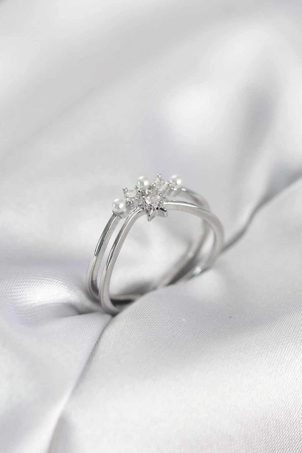 MuI MuI Silberfarbener Perlen-Stern-Modell Zirkonia-Stein Damenring