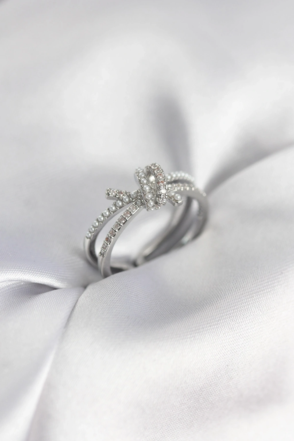 MuI MuI Silberfarbener Damenring mit Perle und Zirkonia-Stein