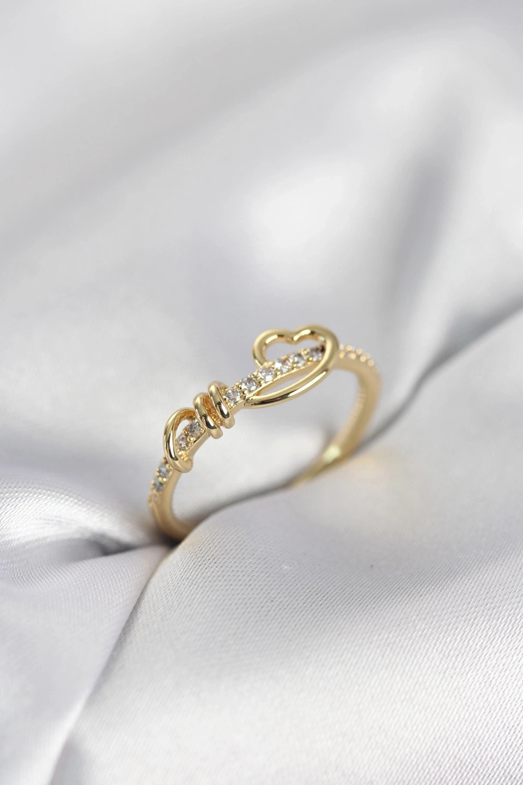 MuI MuI Spiral Heart Modell Goldfarbener Damenring mit Zirkonia-Steinen