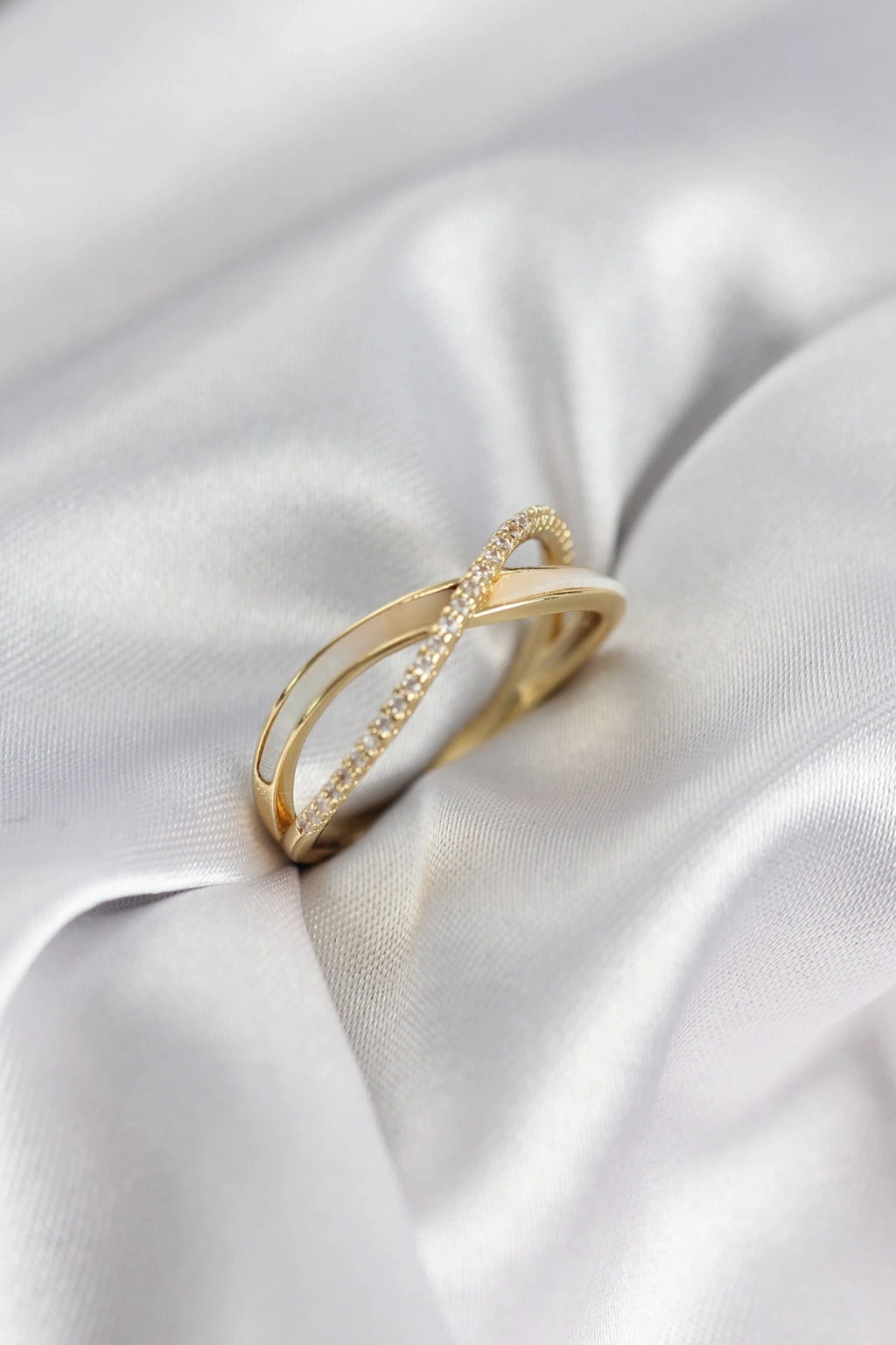 MuI MuI Zirkon-Stein Spirale Perlmutt Goldfarbener Damenring