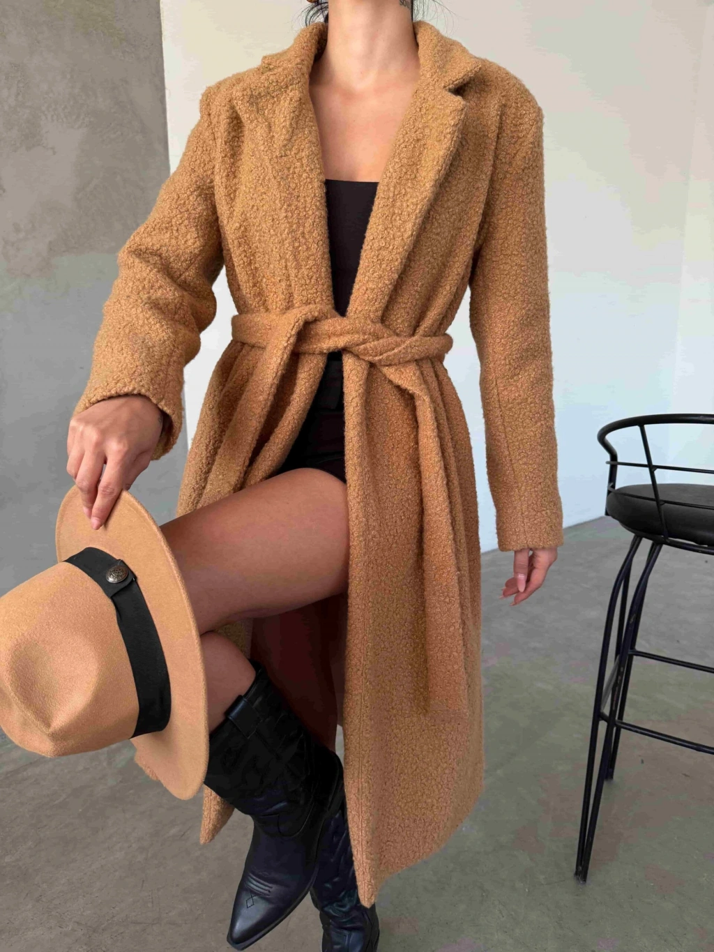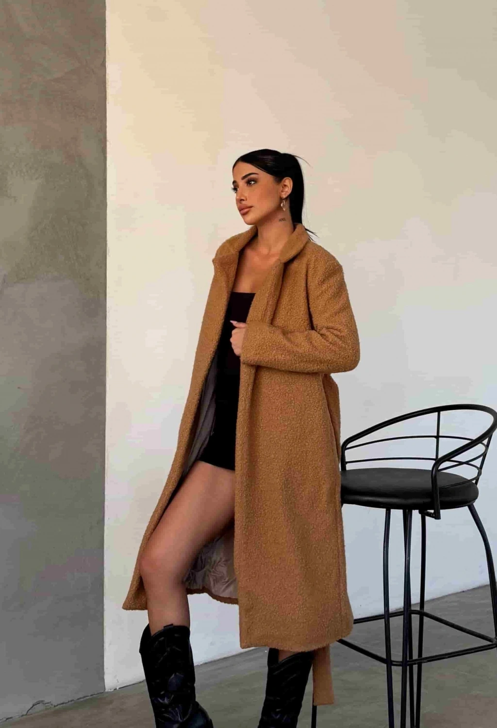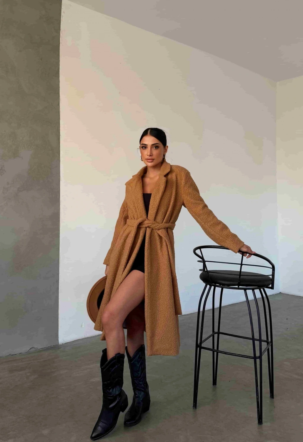 Ürün İçeriği: %30 Yün %70 Akrilik Model Bedeni: (S Beden) Eu:36 Us:4 Ürün Ölçüleri: Boy: 110 cm - En: 50 cm - Etek Ucu: 60 cm - Kol Boyu: 55 cm