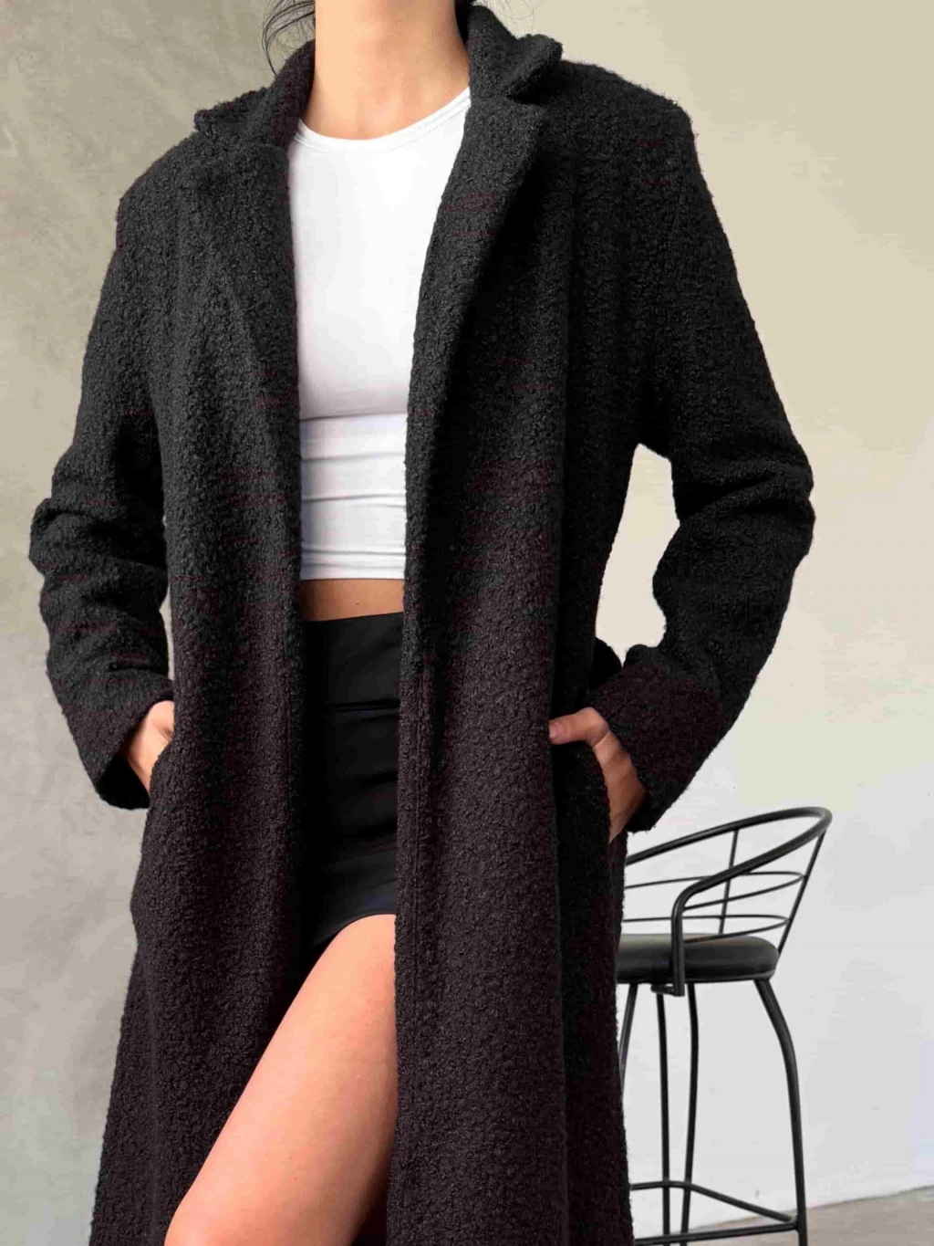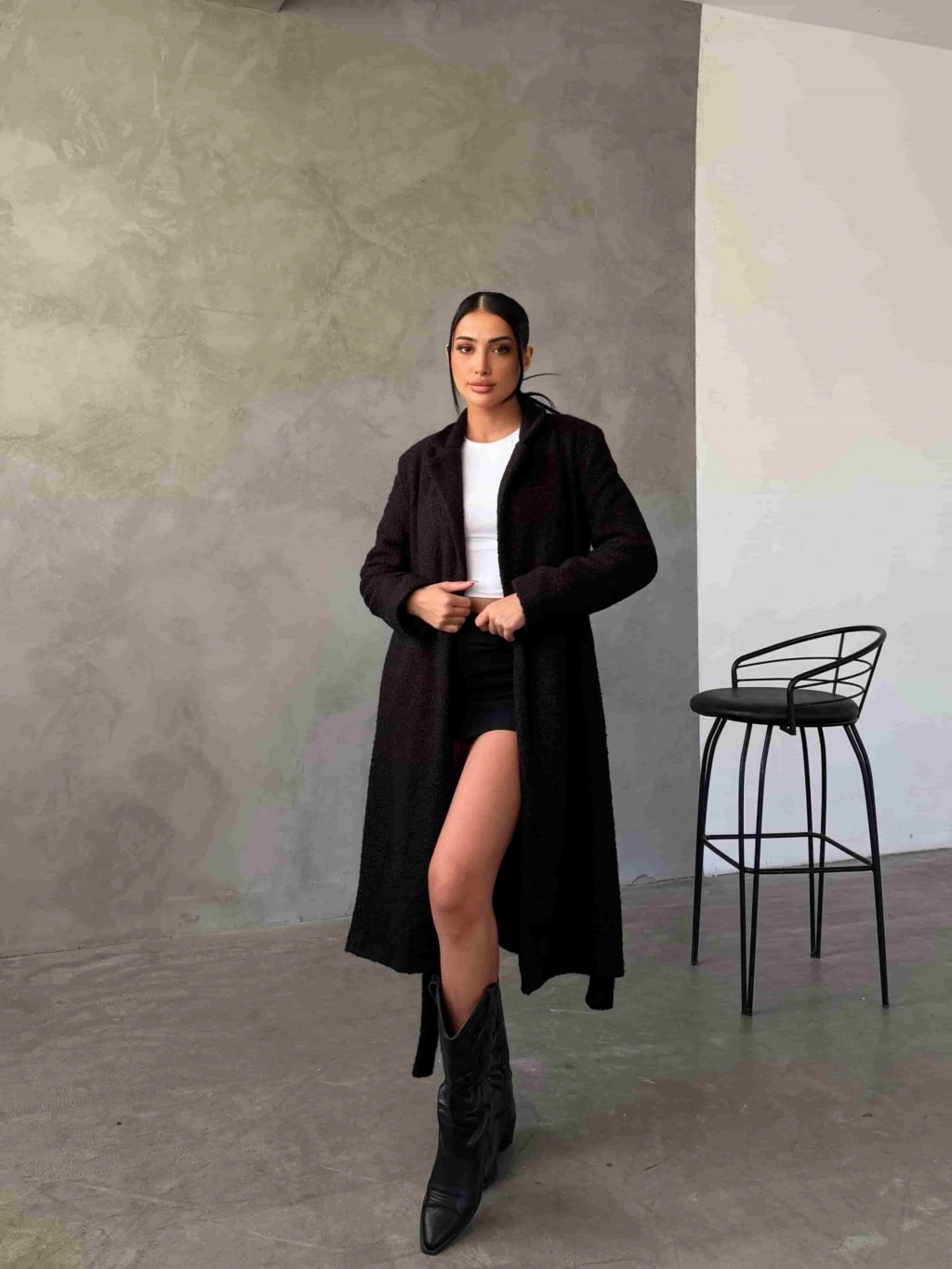 Ürün İçeriği: %30 Yün %70 Akrilik Model Bedeni: (S Beden) Eu:36 Us:4 Ürün Ölçüleri: Boy: 110 cm - En: 50 cm - Etek Ucu: 60 cm - Kol Boyu: 55 cm