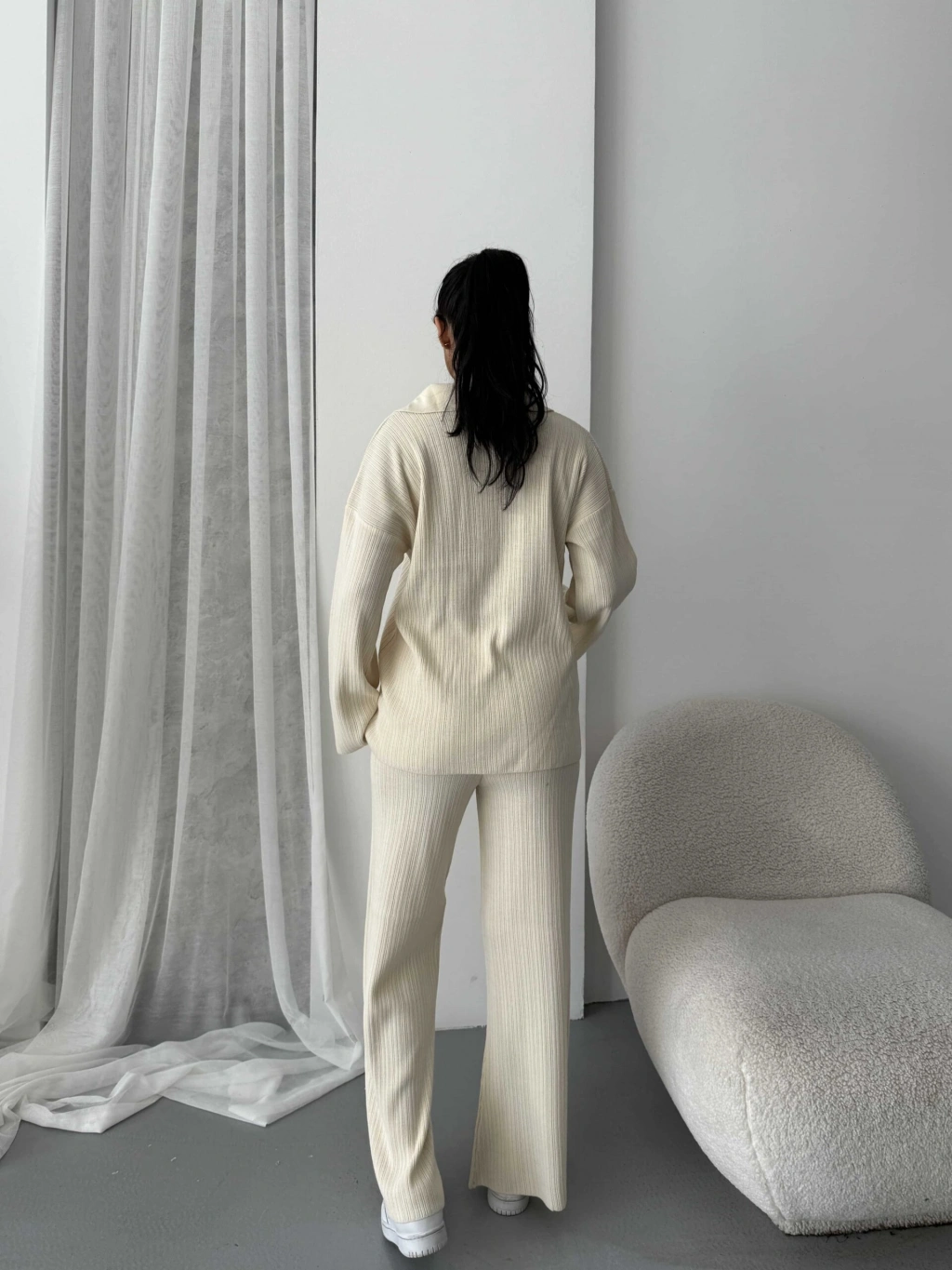 Ürün İçeriği: %30 Yün %70 Akrilik Model Bedeni: (S/M Beden) Eu:36-38 Us:4-6 Ürün Ölçüleri:Üst Hırka:Boy: 75 cm - En: 58 cm - Kol Boyu: 50 cmAlt Pantolon:Boy: 107 cm - Bel: 30 cm - Basen: 48 cm