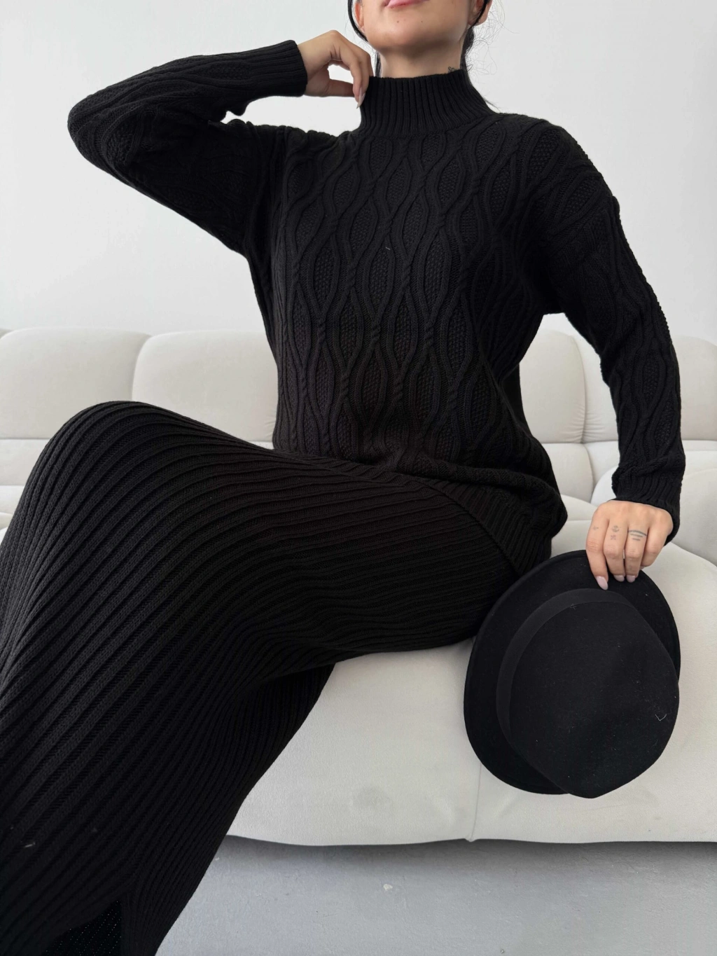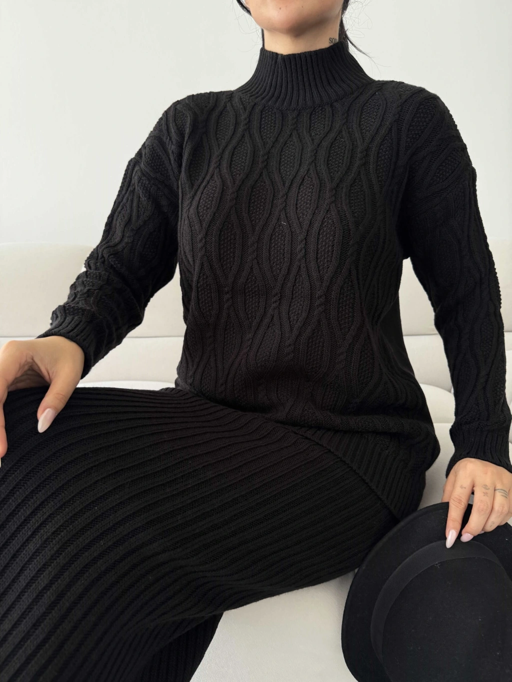 Etek Kazak Triko Takım 1557 - Siyah