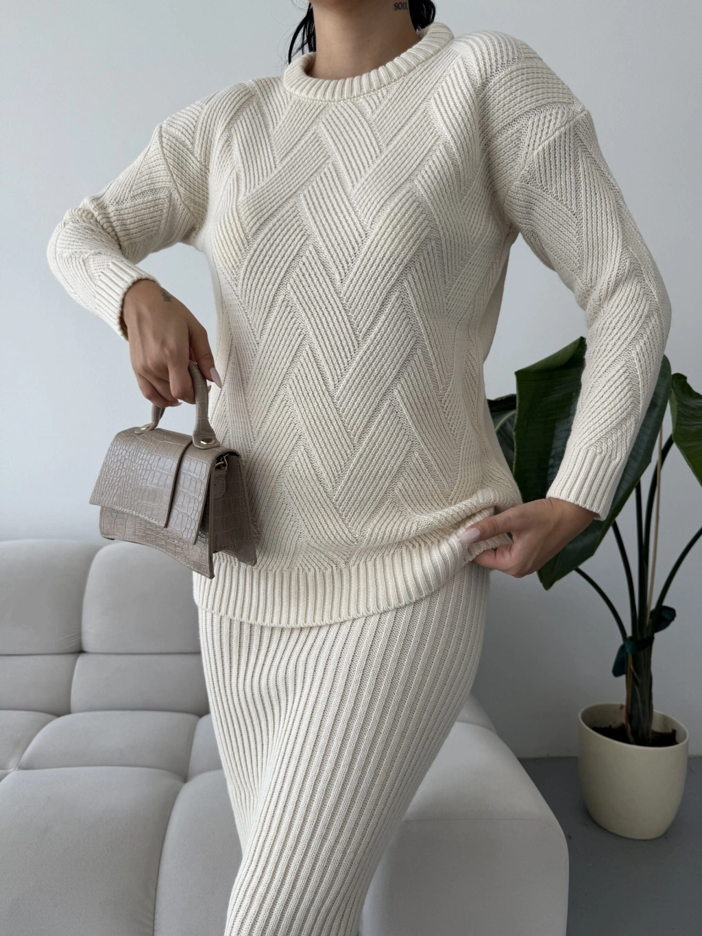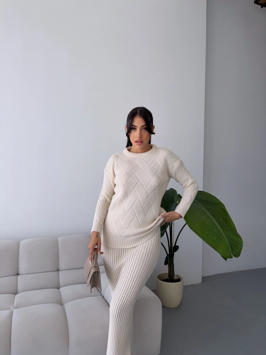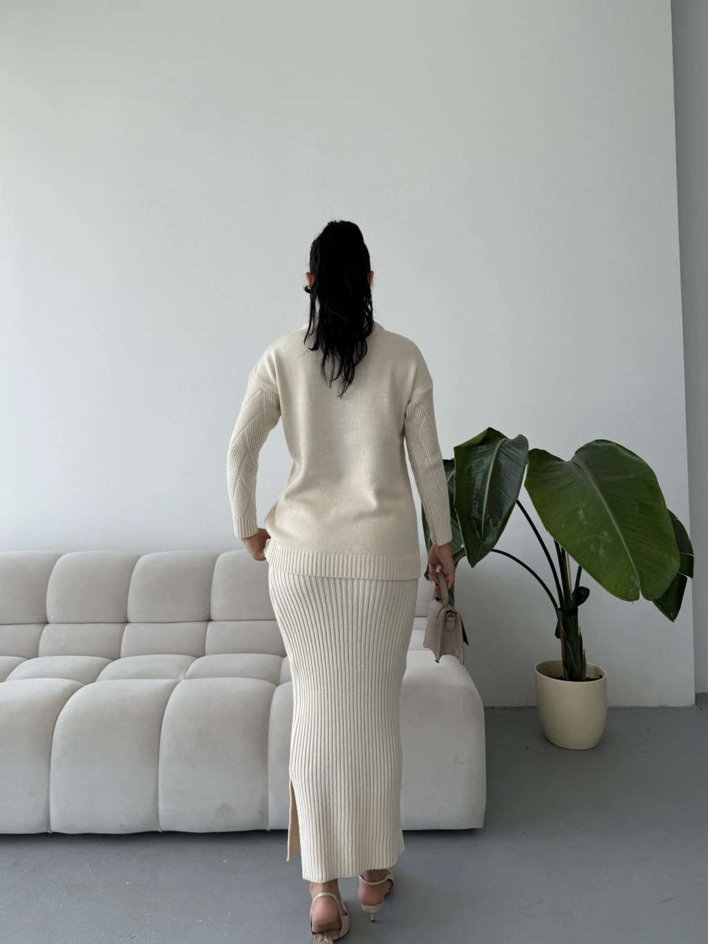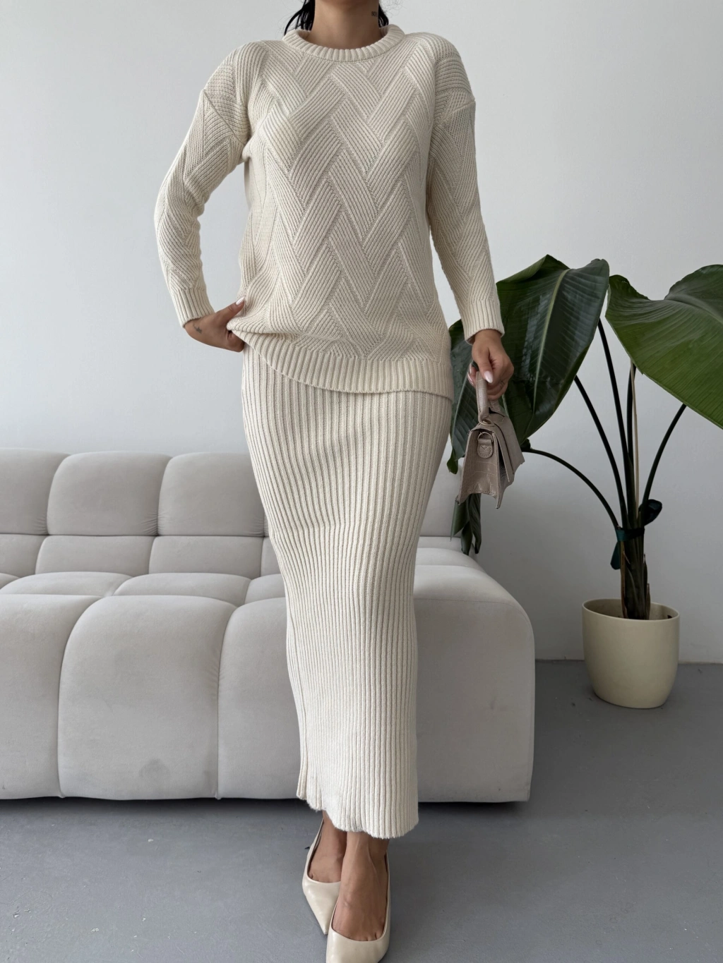 Ürün İçeriği: %30 Yün %70 Akrilik Model Bedeni: (S/M Beden) Eu:36-38 Us:4-6 Ürün Ölçüleri:Üst Hırka: Boy: 72 cm - En: 48 cm - Kol Boyu: 45 cm - Omuz: 52 cmAlt Etek: Boy: 102 cm - Bel: 25 cm - Basen: 30 cm