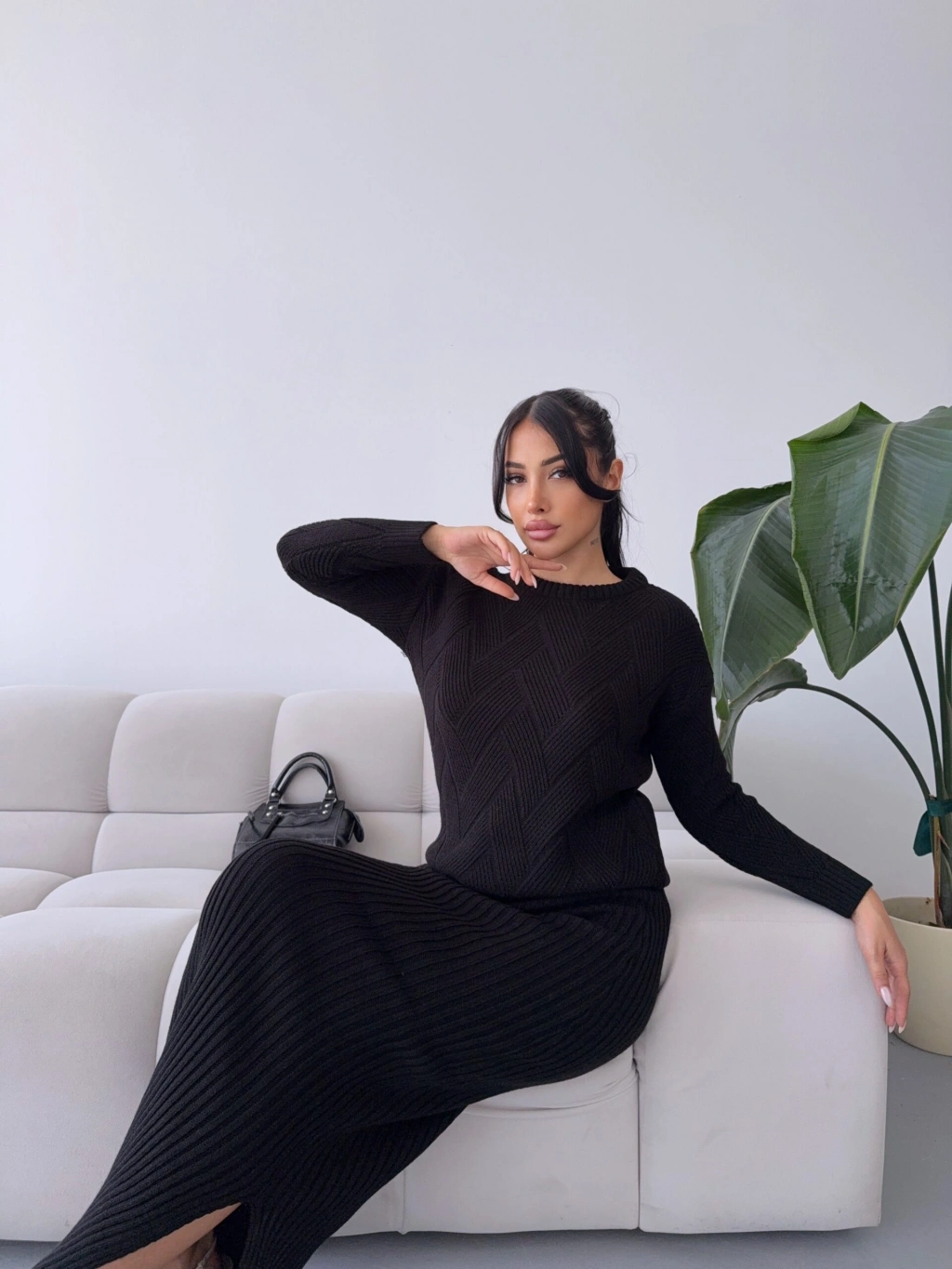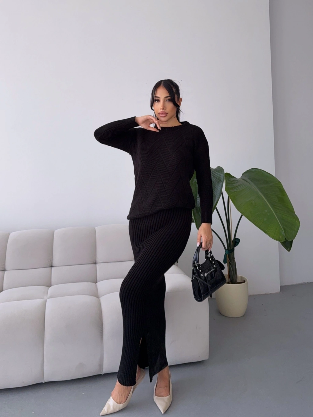 Etek Kazak Triko Takım 1558 - Siyah