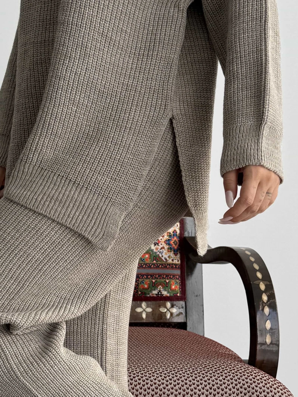 Ürün İçeriği: %30 Yün %70 Akrilik Model Bedeni: (S/M Beden) Eu:36-38 Us:4-6 Ürün Ölçüleri:Üst Kazak:Boy: 75 cm - En: 63 cm - Omuz: 55 cm - Kol Boyu: 43 cmAlt PantolonBel: 26 cm - Basen: 50 cm - Boy: 102 cm