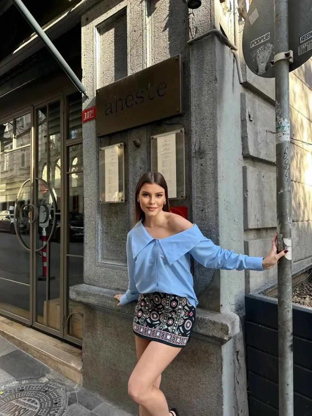 Astarlı Etek Gömlek Takım - Mavi