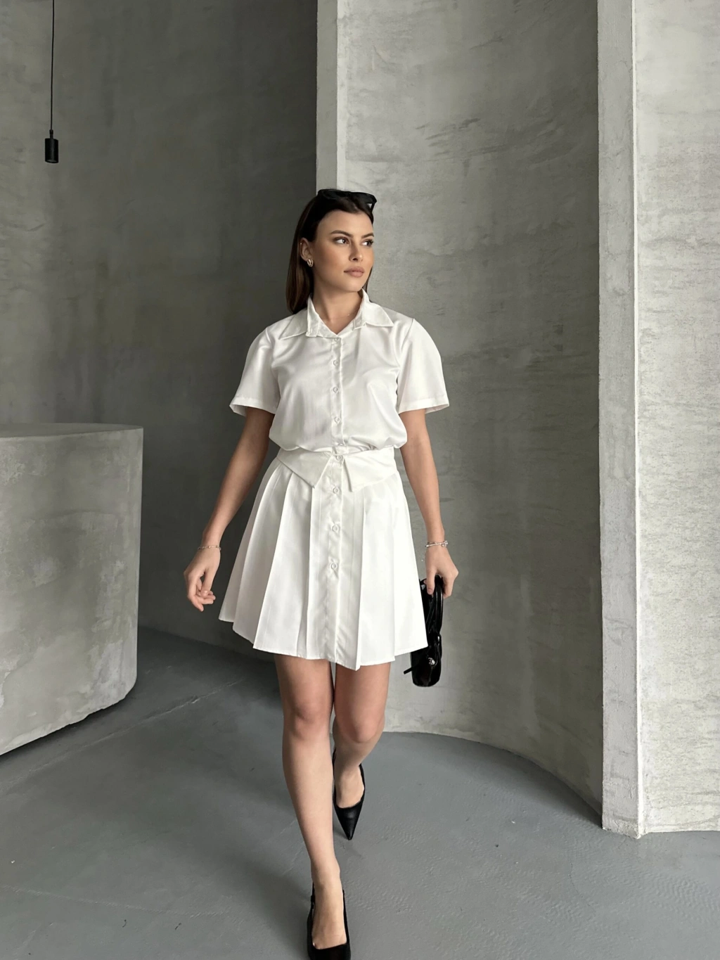 Astarlı Etek Gömlek Takım - Beyaz