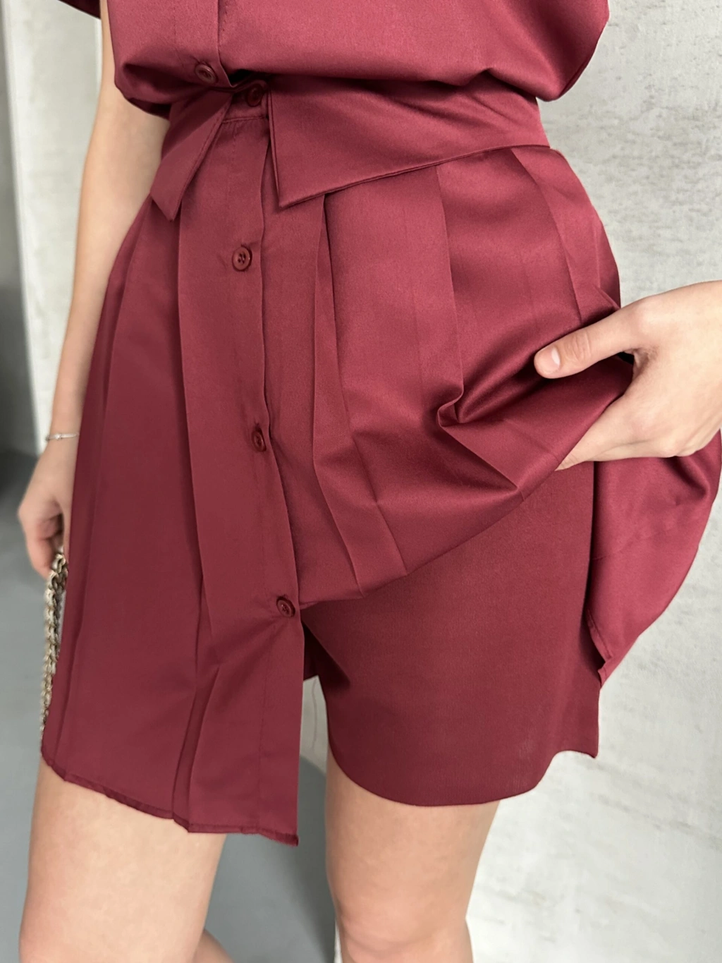 Ürün İçeriği: %95 Cotton %5 Polyester Model Bedeni: (S Beden) Eu:36 Us:4 Ürün Ölçüleri:   Üst Gömlek:Boy: 60 cm - En: 45 cm - Kol Boyu: 20 cm  Alt Etek:Boy: 44 cm - En: 35 cm  Astar Şort:Boy: 35 cm - En: 35 cm