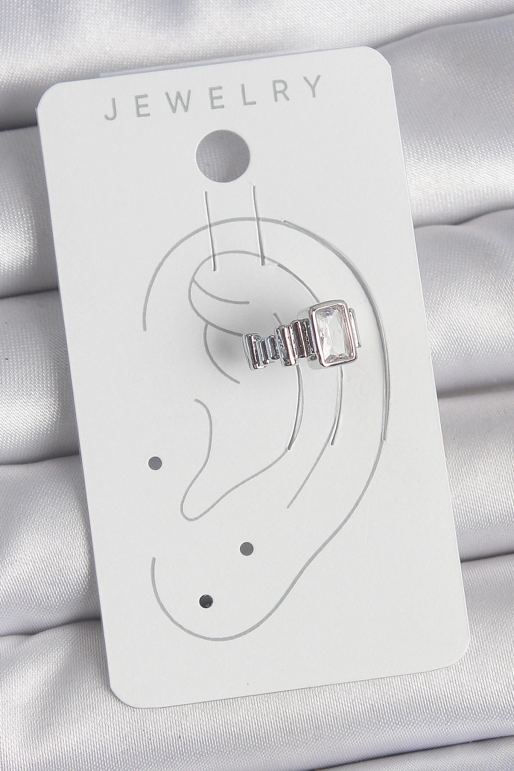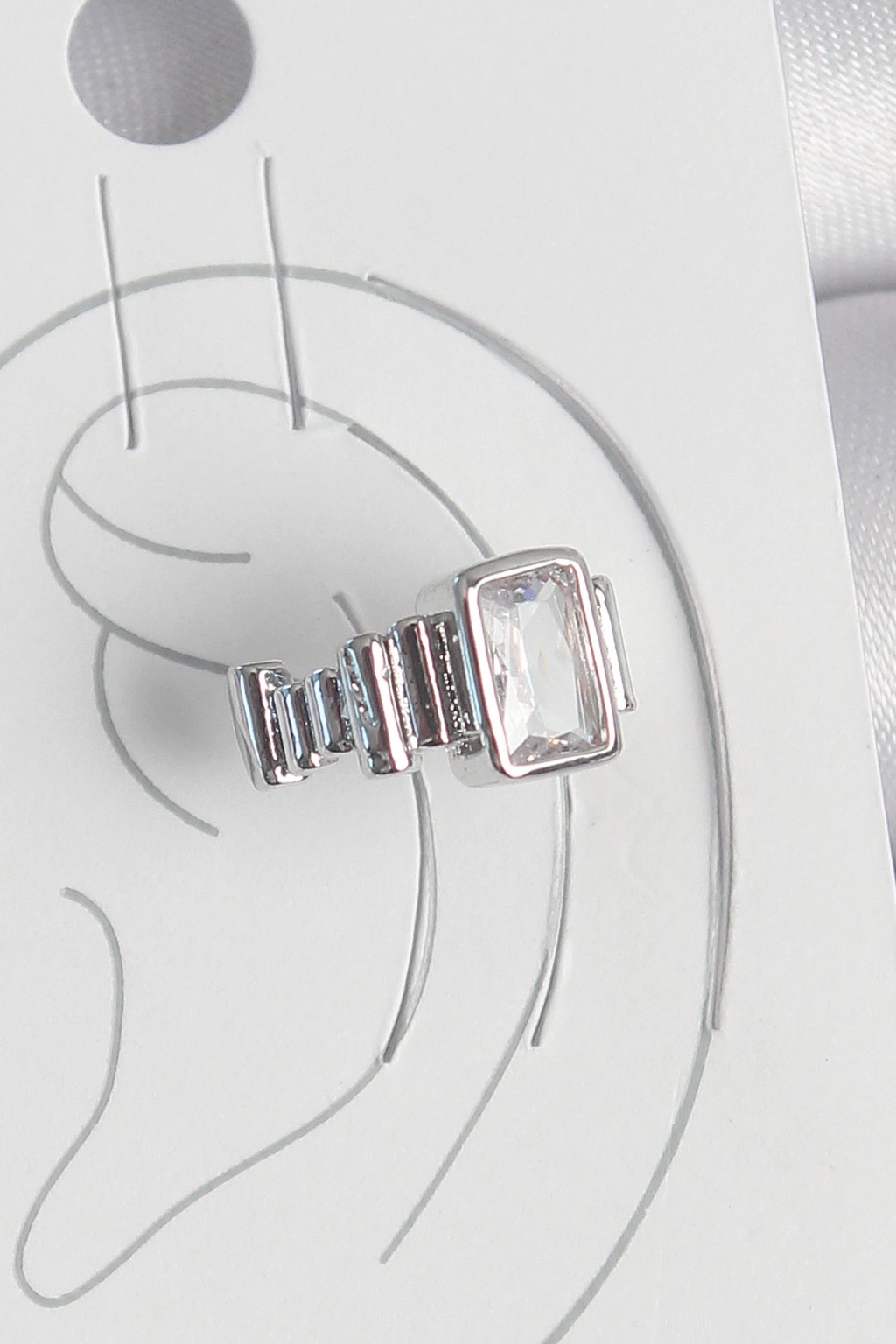 MuI MuI Pirinç Gümüş Renk Kare Zirkon Taşlı Kadın Kıkırdak Model Küpe