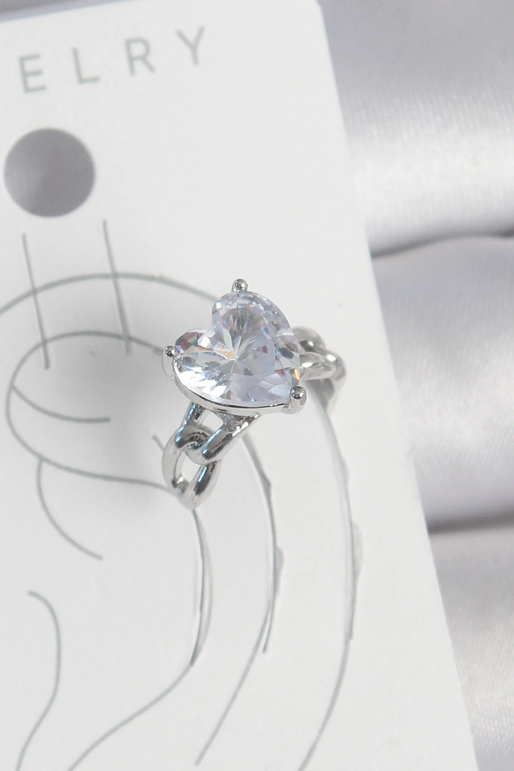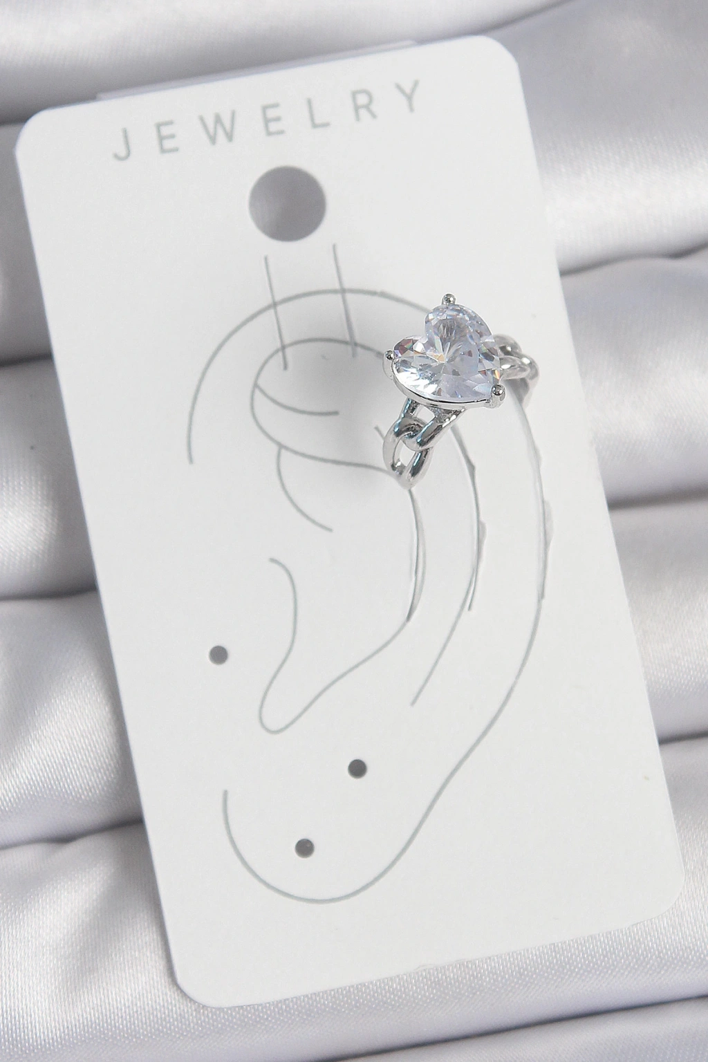 MuI MuI Pirinç Gümüş Renk Zirkon Taşlı Kalp Model Kadın Kıkırdak Küpe
