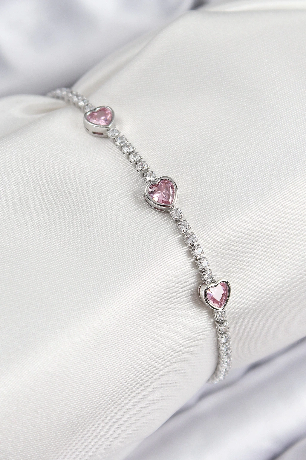MuI MuI Pirinç Zirkon Taşlı Pembe Kalp Model Gümüş Renk Kadın Bileklik