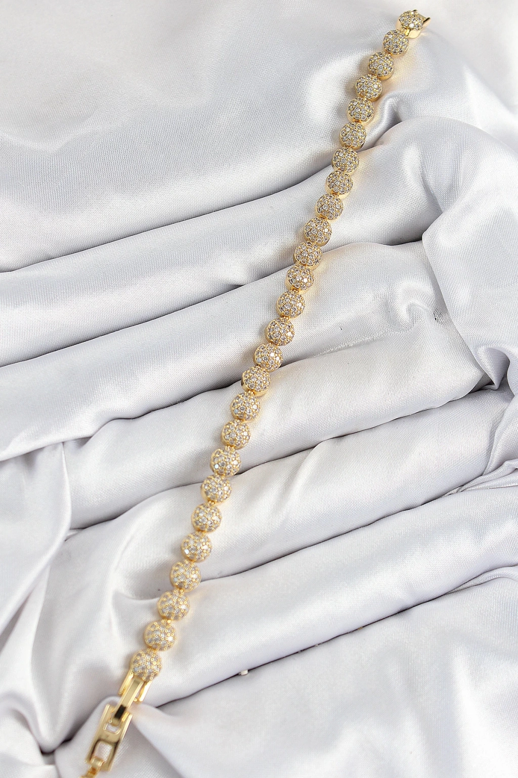 MuI MuI Pirinç Zirkon Taşlı Yarım Topcuk Model Gold Renk VIP Seri Kadın Bileklik