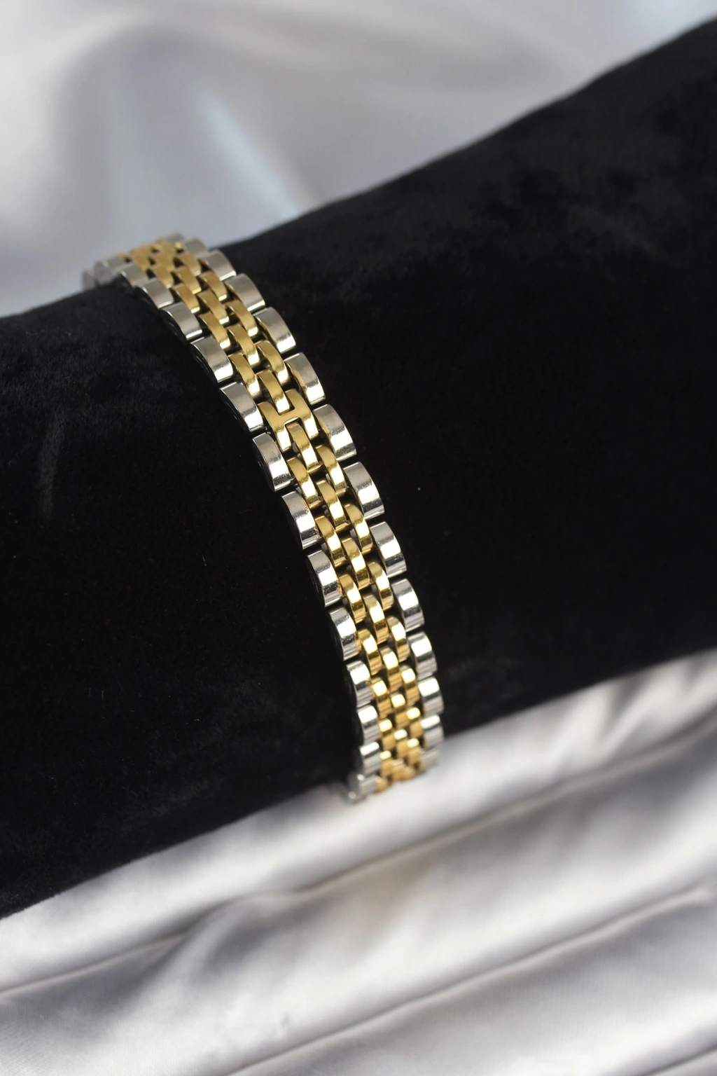 MuI MuI 316L Çelik 7 mm Kalınlıkta Gold ve Gümüş Renkli Erkek Bileklik
