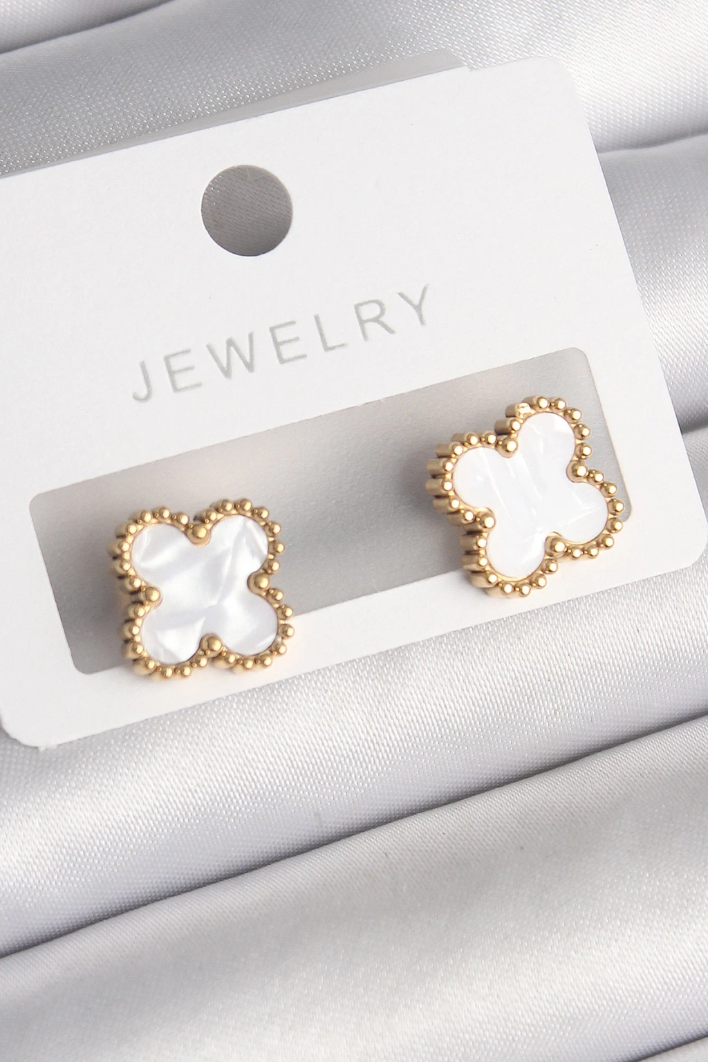 MuI MuI Yonca Model Gümüş Renk Pirinç 3'lü Kadın Küpe Seti