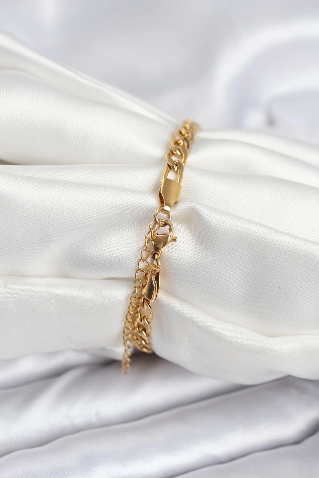 MuI MuI 14K Gold Renk Kaplama Lazer Ezme Zincir Model CM Kadın Bileklik