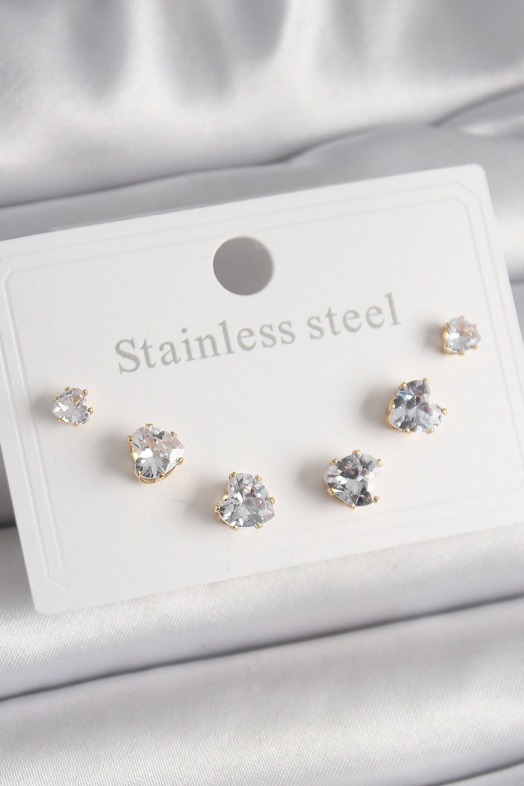 MuI MuI Yonca Model Gümüş Renk Pirinç 3'lü Kadın Küpe Seti