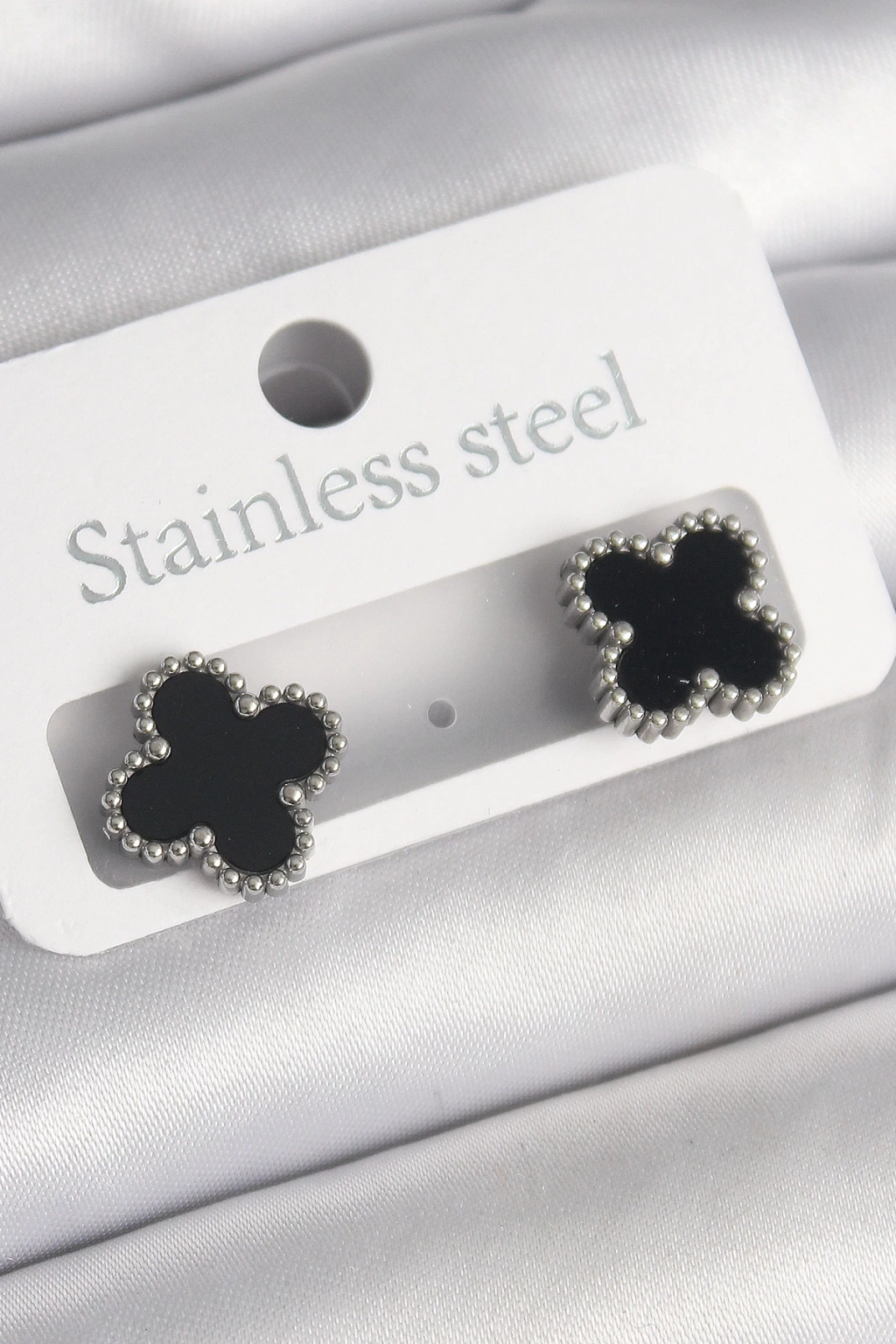 MuI MuI Yonca Model Gümüş Renk Pirinç 3'lü Kadın Küpe Seti