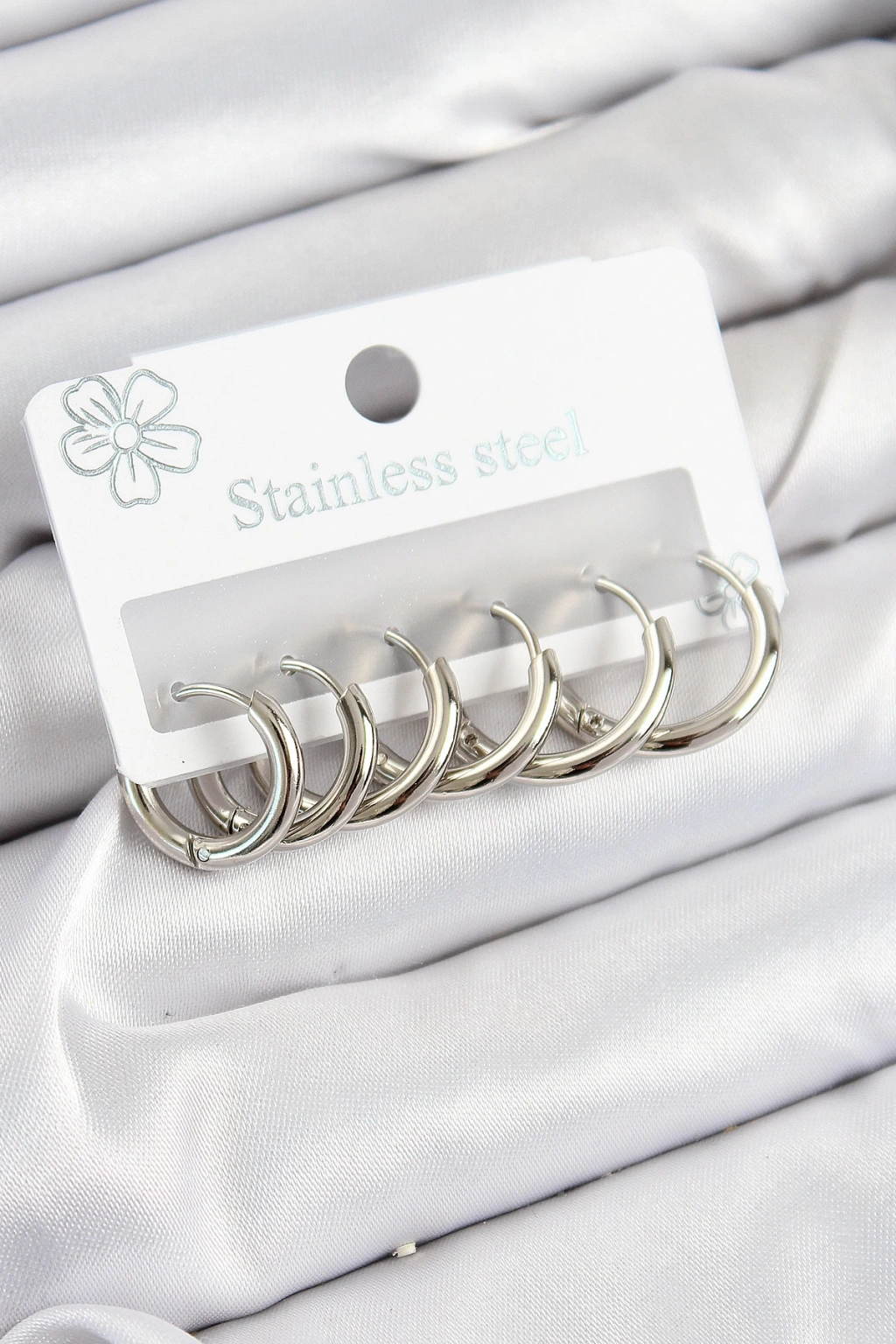 MuI MuI Yonca Model Gümüş Renk Pirinç 3'lü Kadın Küpe Seti