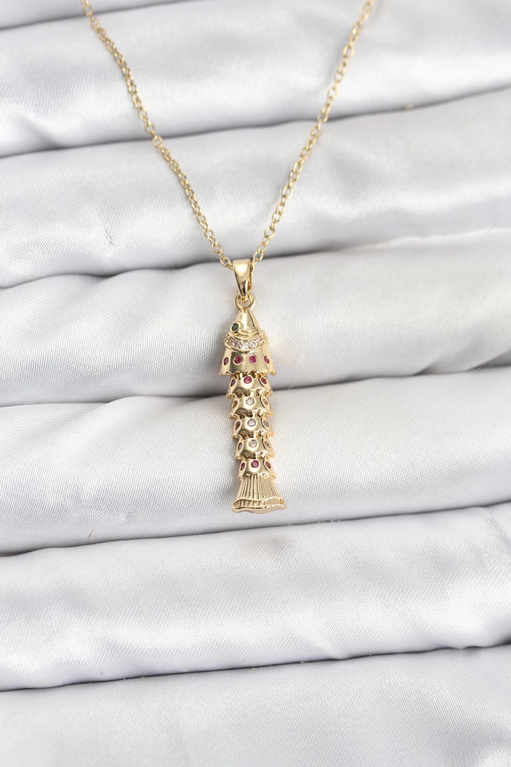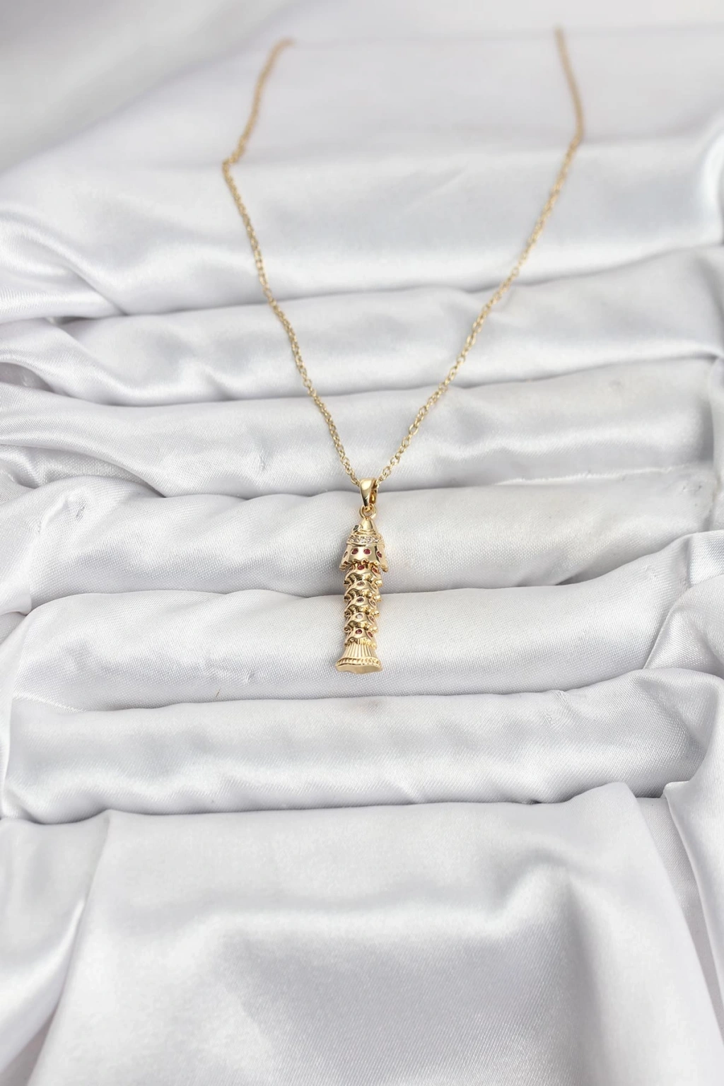 MuI MuI 316L Çelik Zincir Gold Renk Balık Model Zirkon Taşlı Kadın Kolye