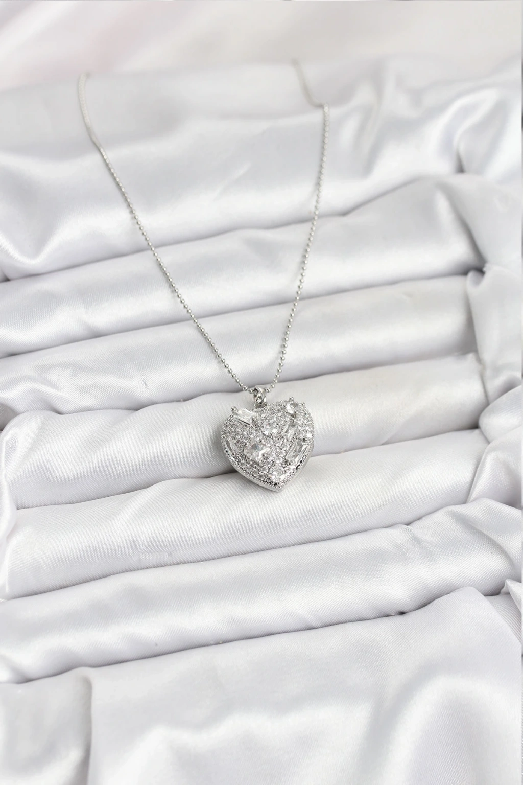 MuI MuI 316L Çelik Zincir Gümüş Zirkon Taşlı Kalpli Kadın Kolye