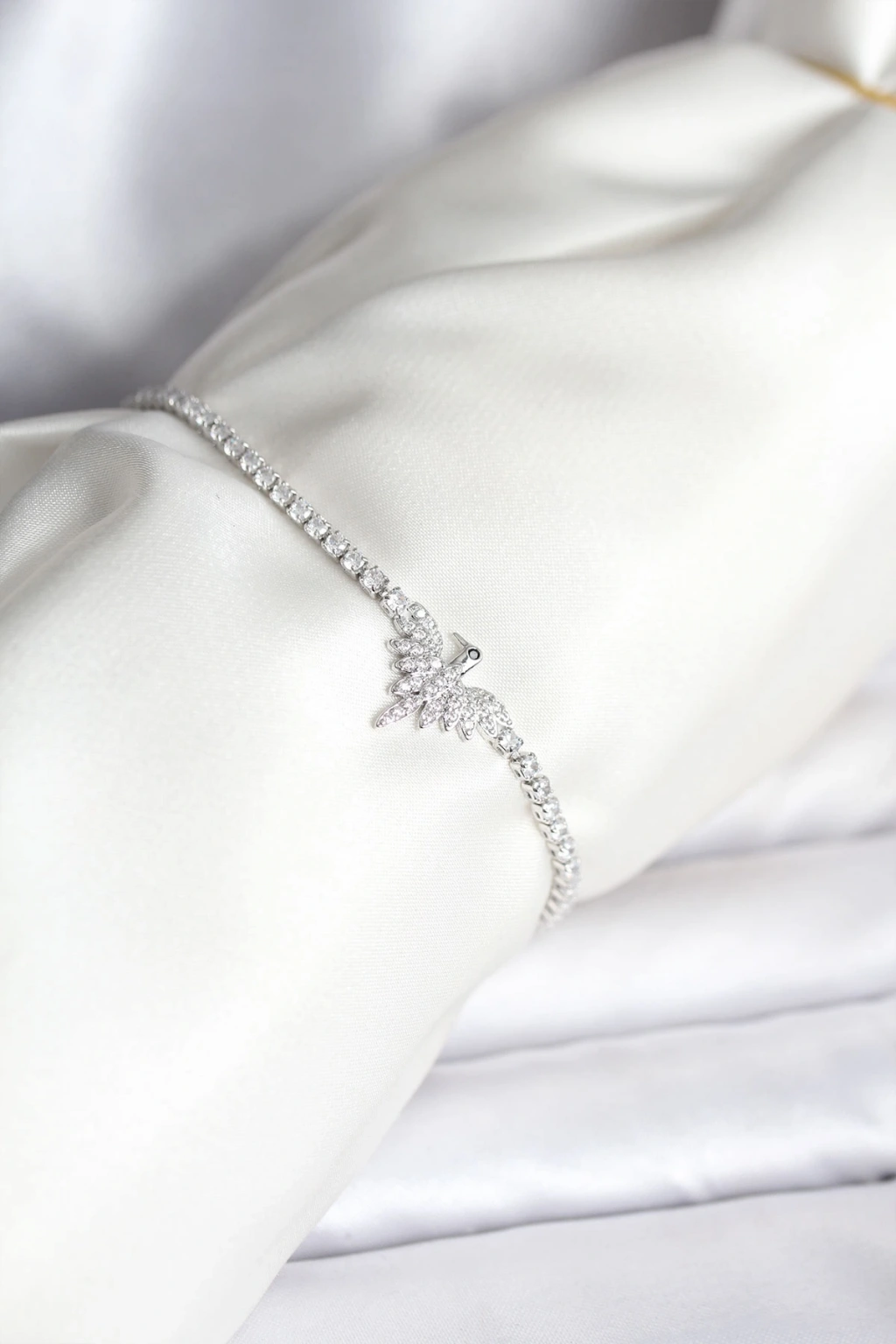 MuI MuI Anka Kuşu Model Zirkon Taşlı Gümüş Renk Pirinç Su Yolu Kadın Bileklik