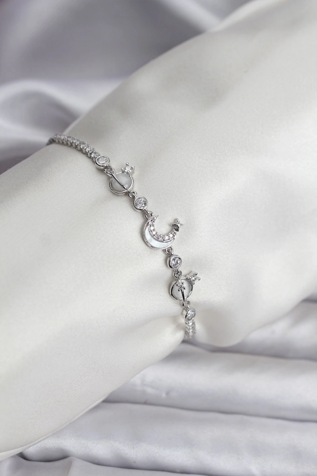 MuI MuI Charmlı Model Zirkon Taşlı Gümüş Renk Su Yolu Kadın Bileklik