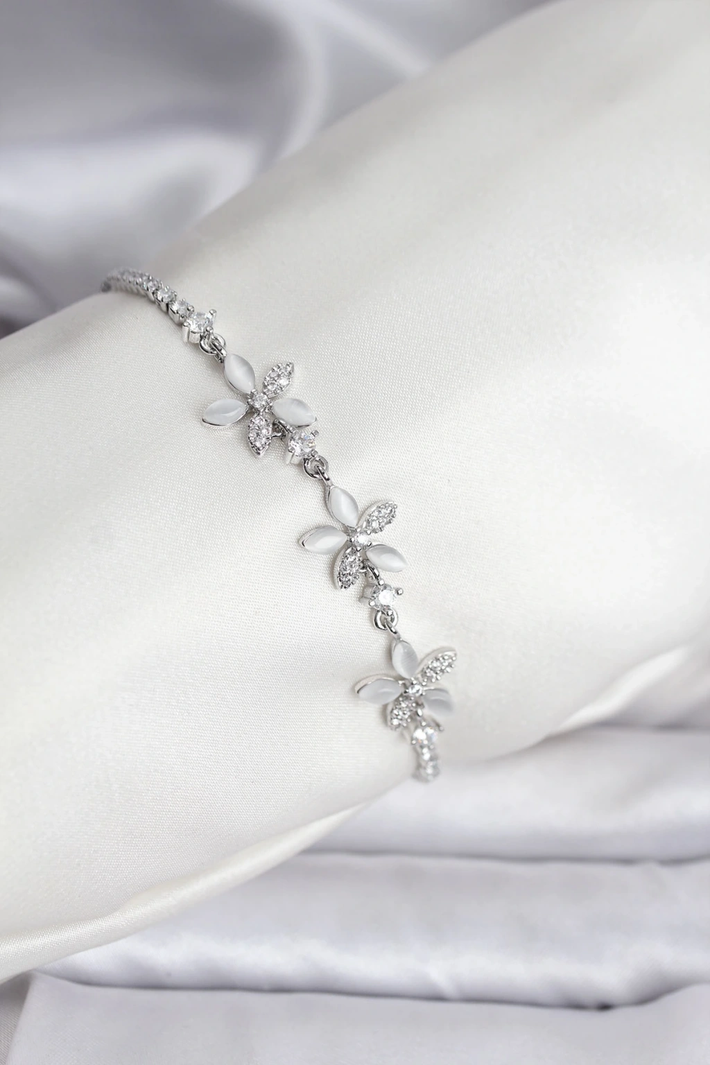 MuI MuI Çiçek Model Zirkon Taşlı Gümüş Renk Pirinç Su Yolu Kadın Bileklik
