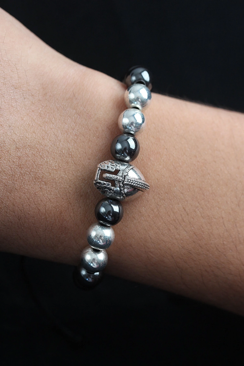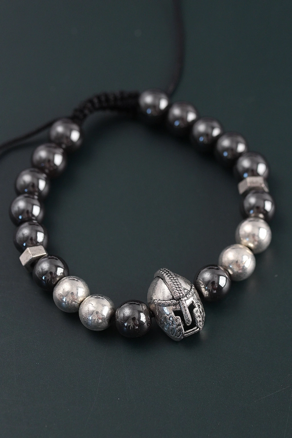 MuI MuI Doğal Taş Gladyatör Model Gümüş Ve Füme Renk Asansörlü Erkek Bileklik