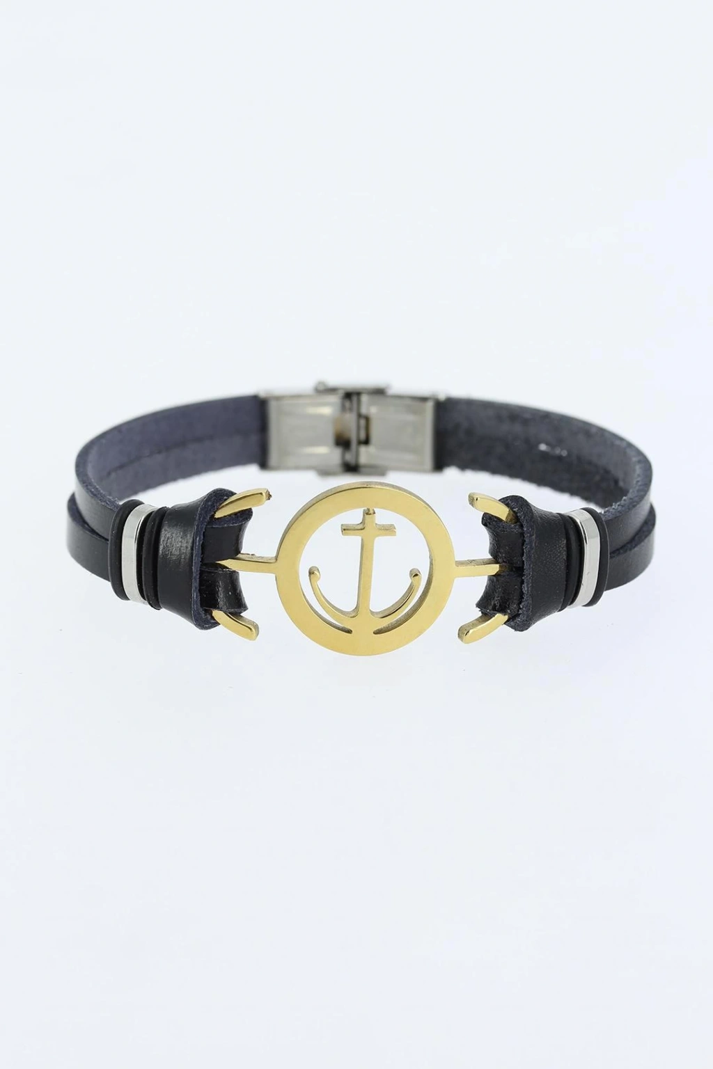 Günlük şıklığınız için Gold Renk Deniz Çapası Figürlü Metal Aksesuarlı Siyah Renk Deri Erkek Bileklik modeli doğru bir seçim olacak.