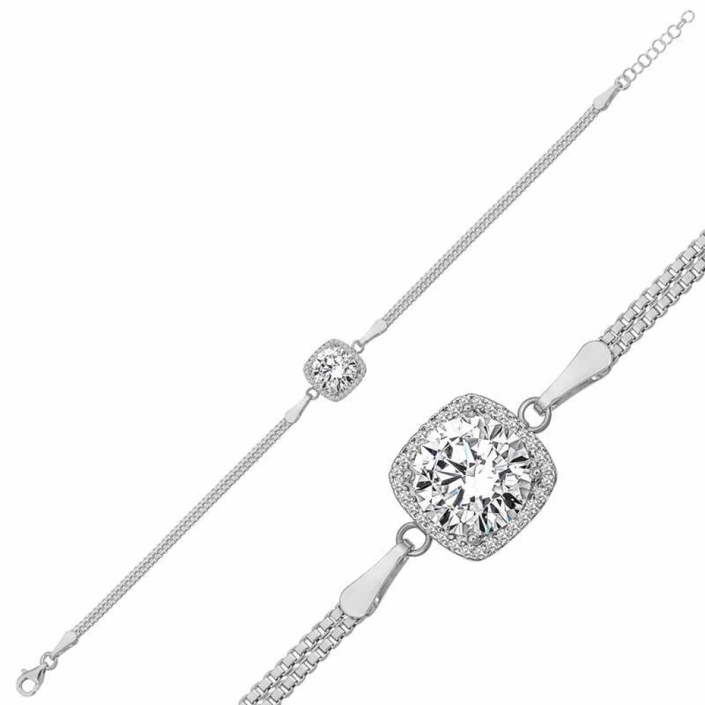 Gümüş Kare Montür Beyaz Taşlı Kadın Bileklik