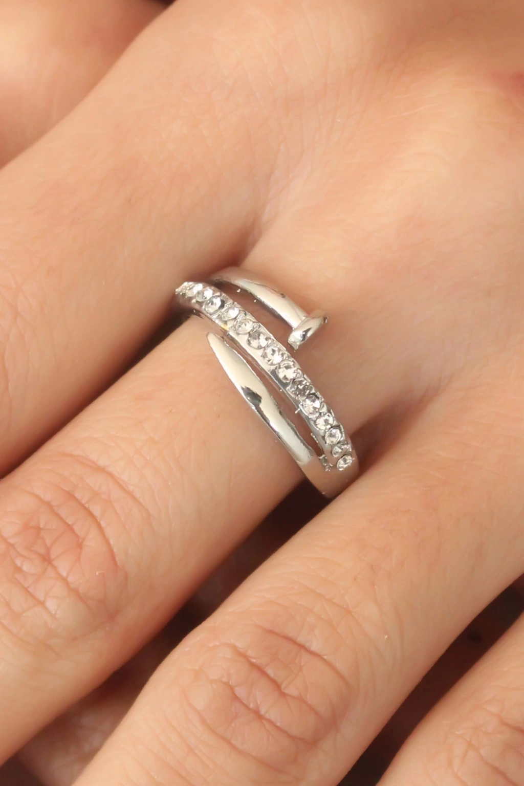 MuI MuI Gümüş Renk Taşlı Çivi Ayarlanabilir Kadın Yüzük