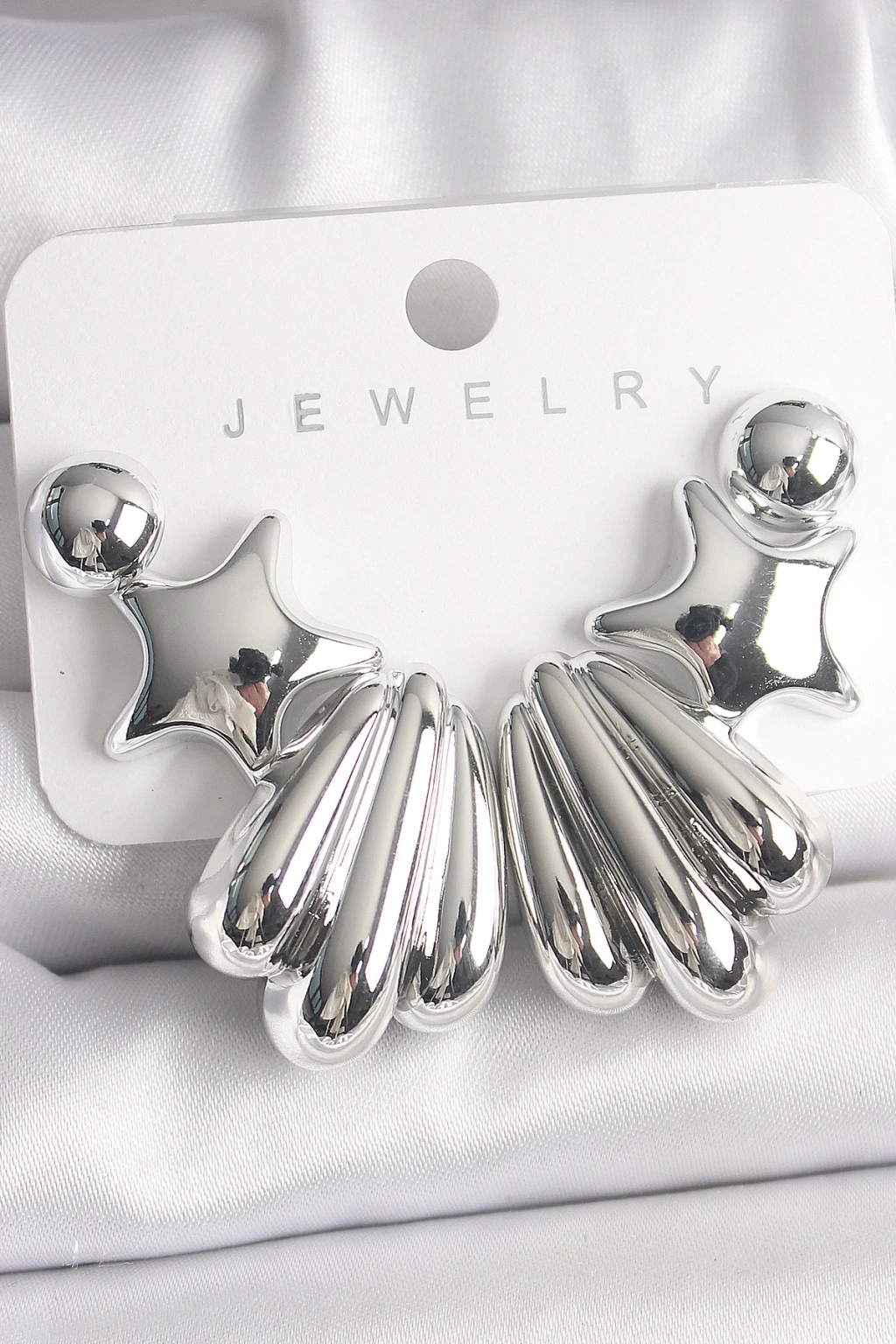 MuI MuI Gümüş Renk Yıldız Deniz Kabuğu Model CCB Plastik Kadın Küpe Seti
