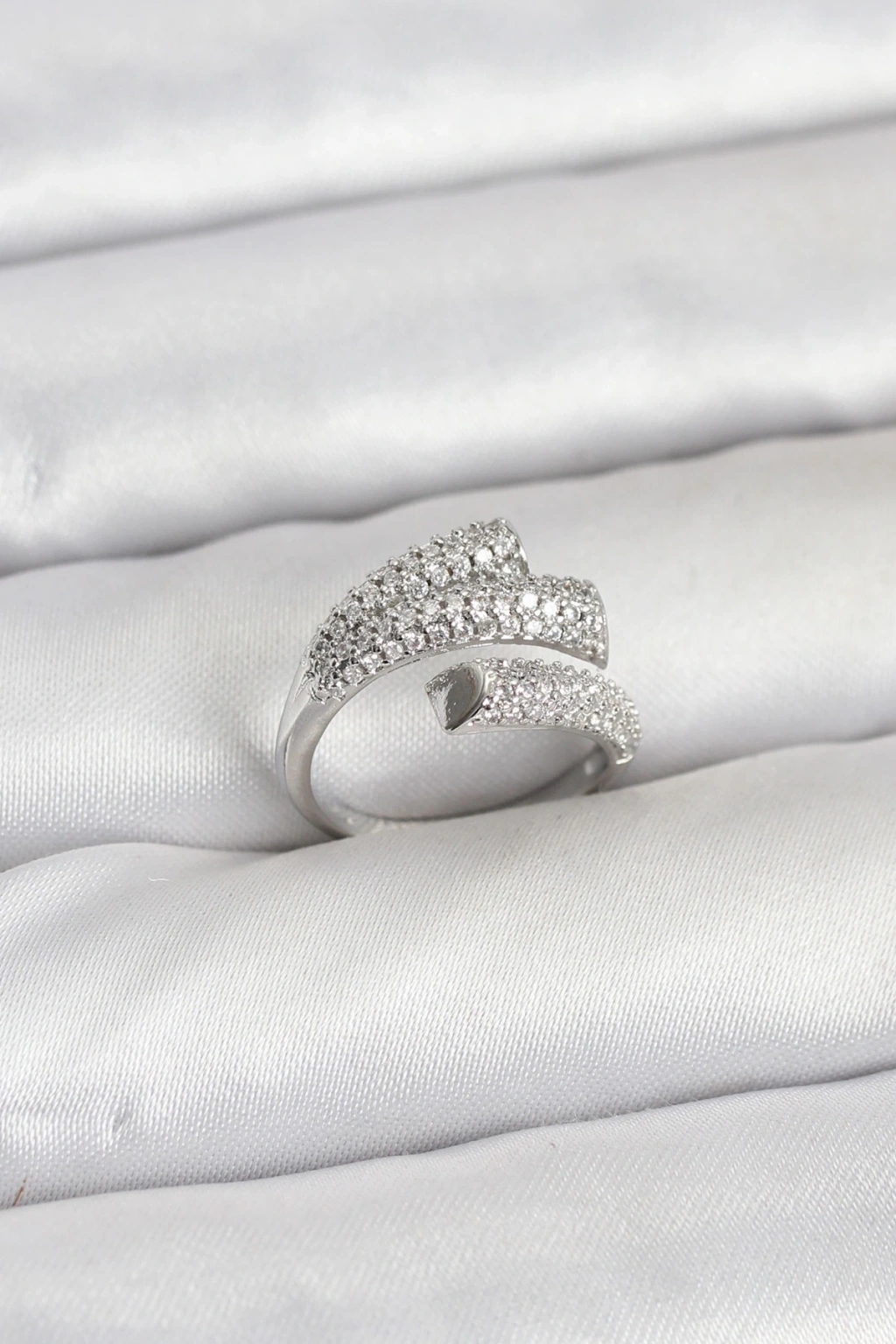 MuI MuI Gümüş Renk Zirkon Taşlı Pirinç Kadın Yüzük