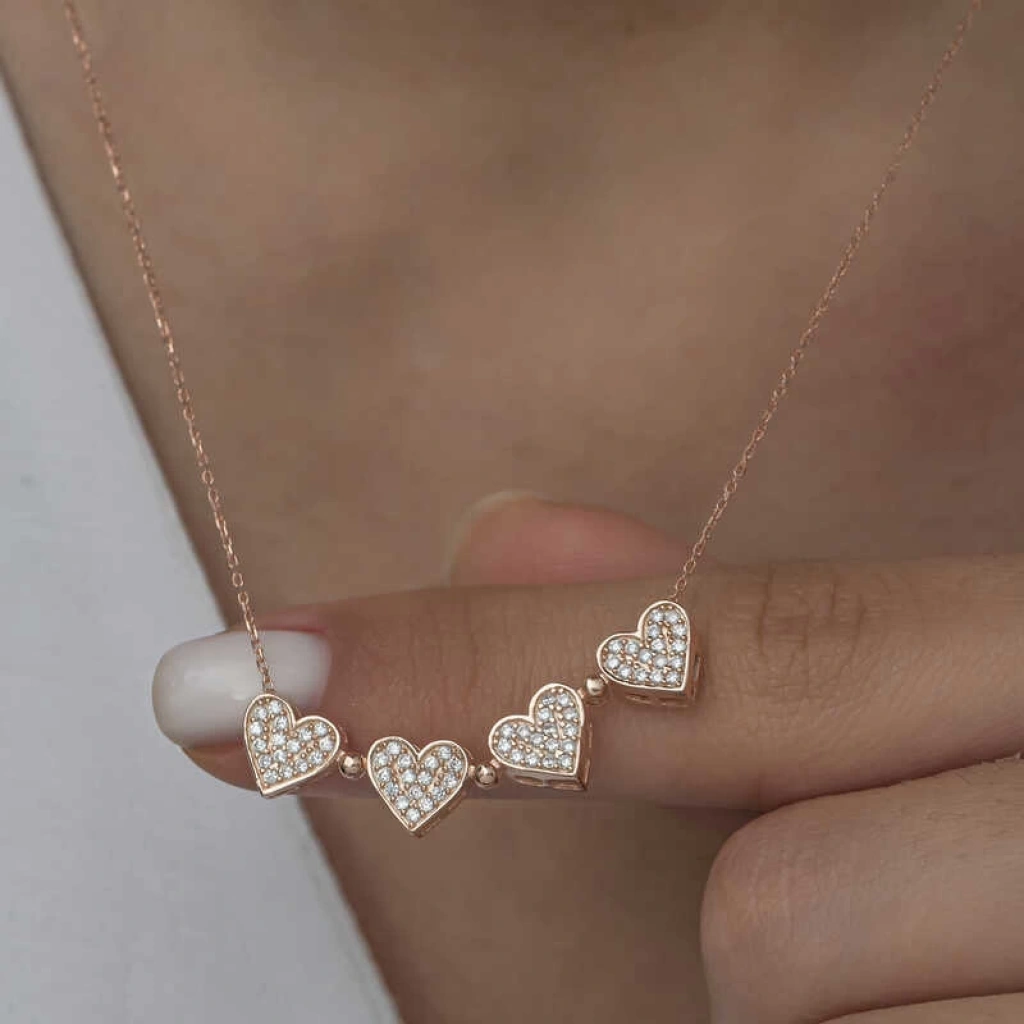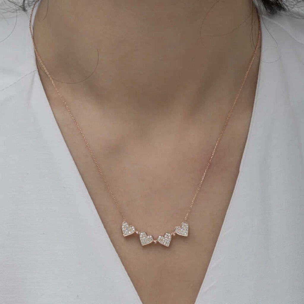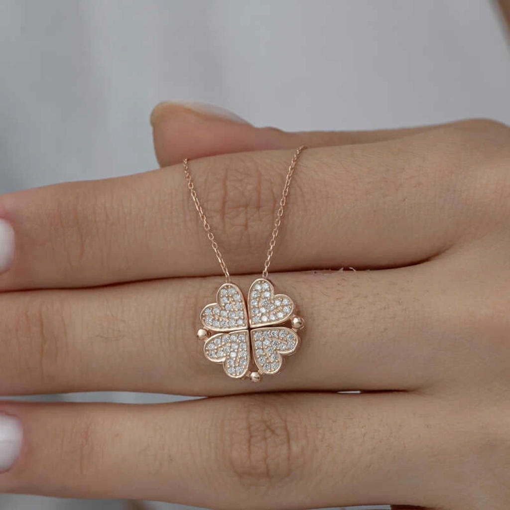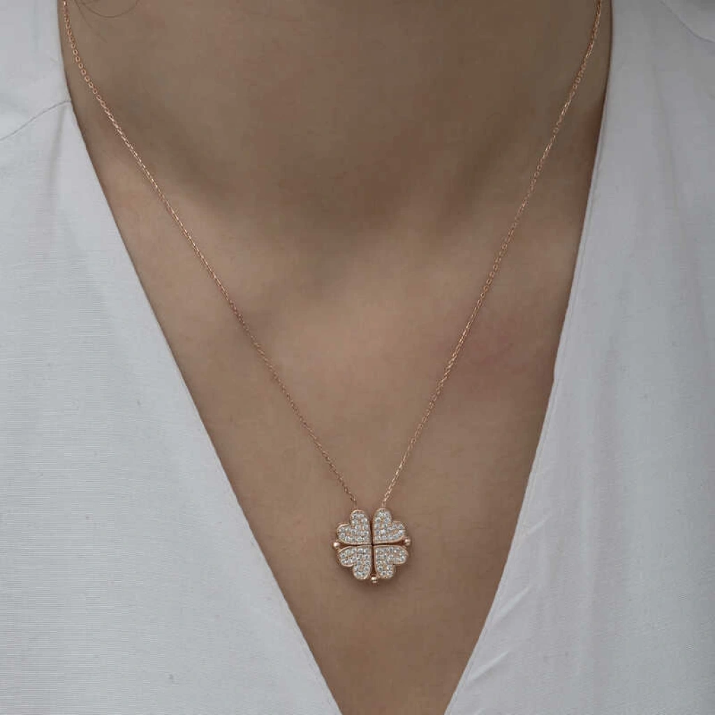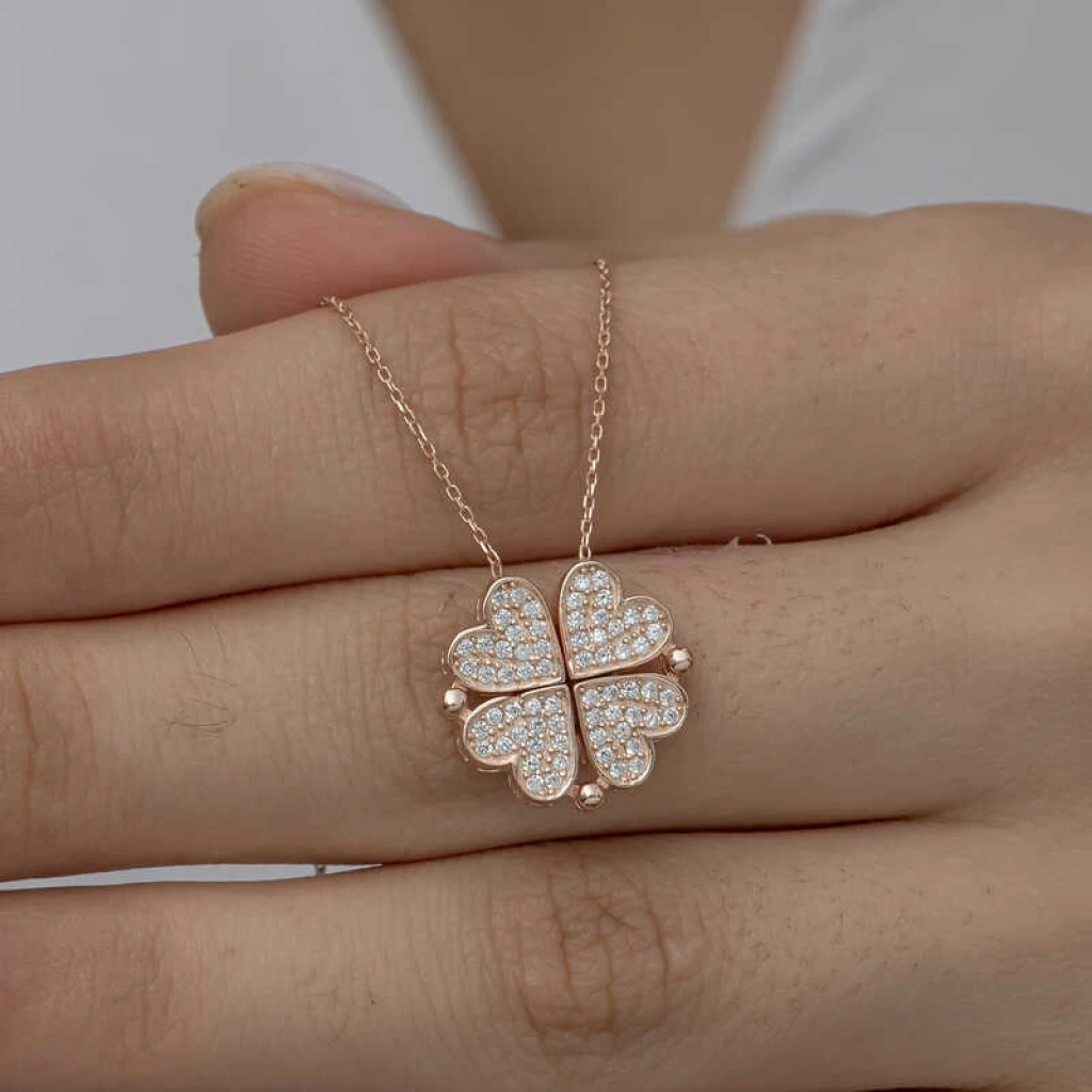 Gümüş Rose Kalpli Açılabilen Yonca Kadın Kolye